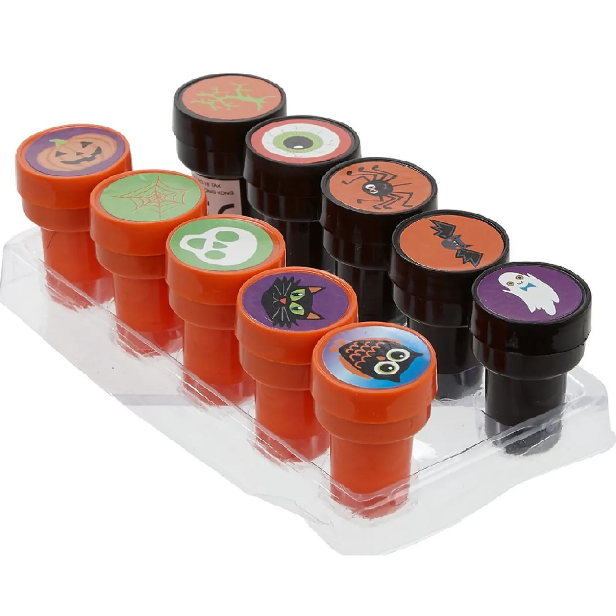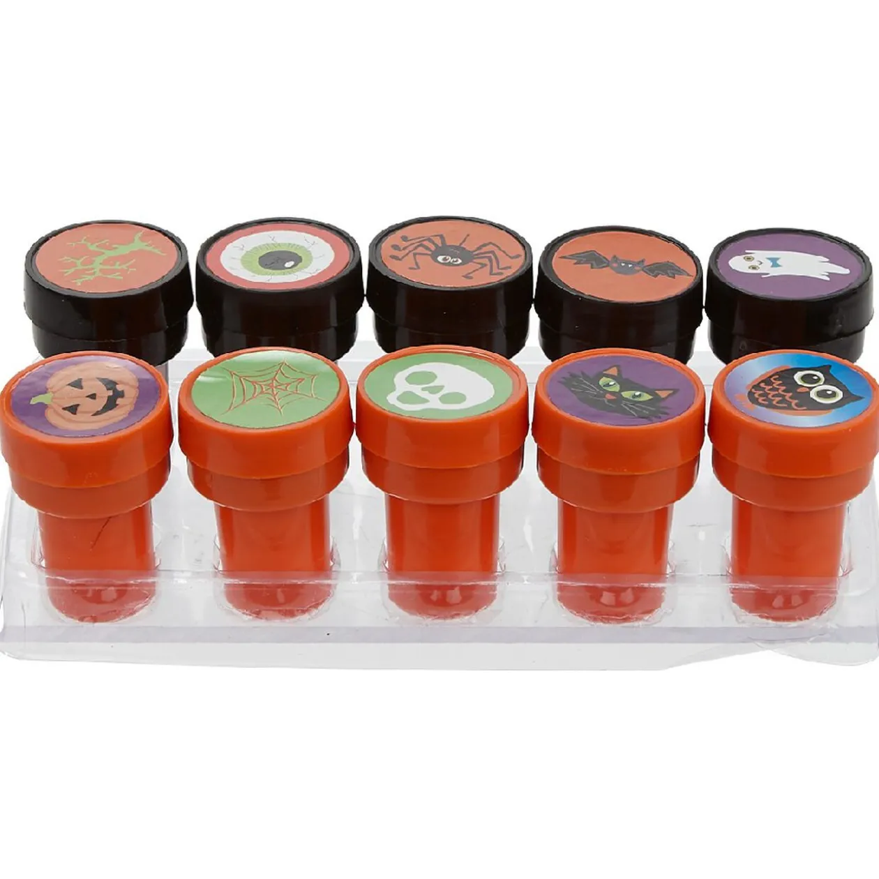 Set de 9 tampons à motifs assortis sur le thème de Halloween: chauve-souris, citrouille, fantôme, tête de mort, araignée…