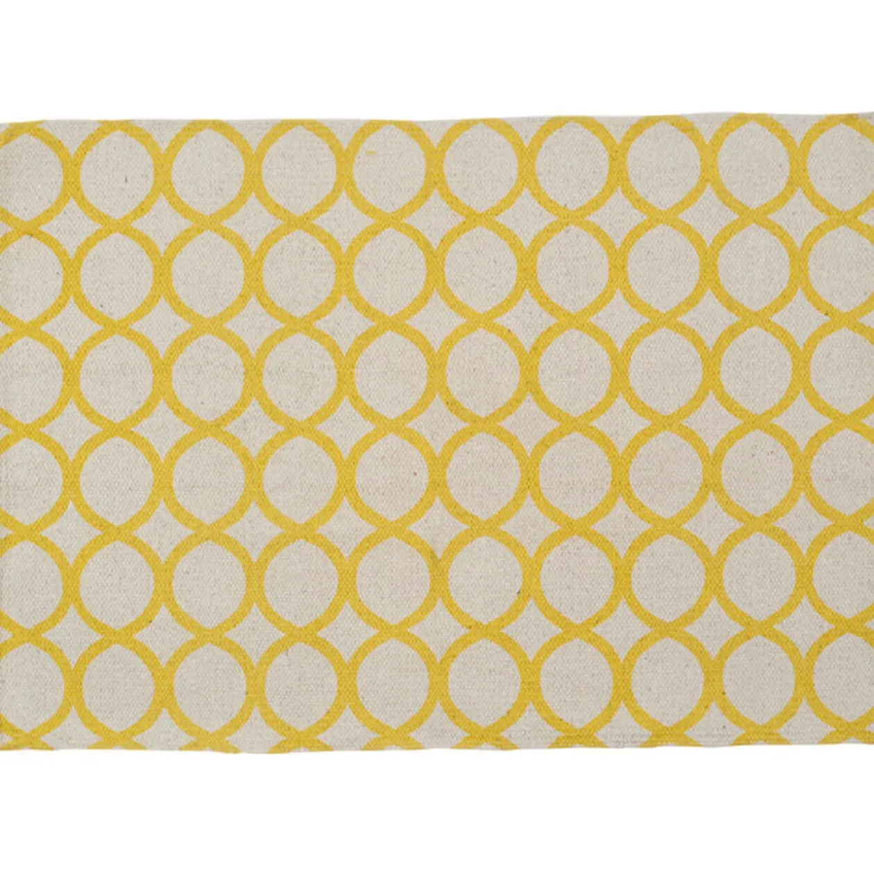 Dans votre chambre ou dans votre salon, ce tapis jaune en coton style années 50 trouvera vite sa place.Dim : 90 x 60 cm