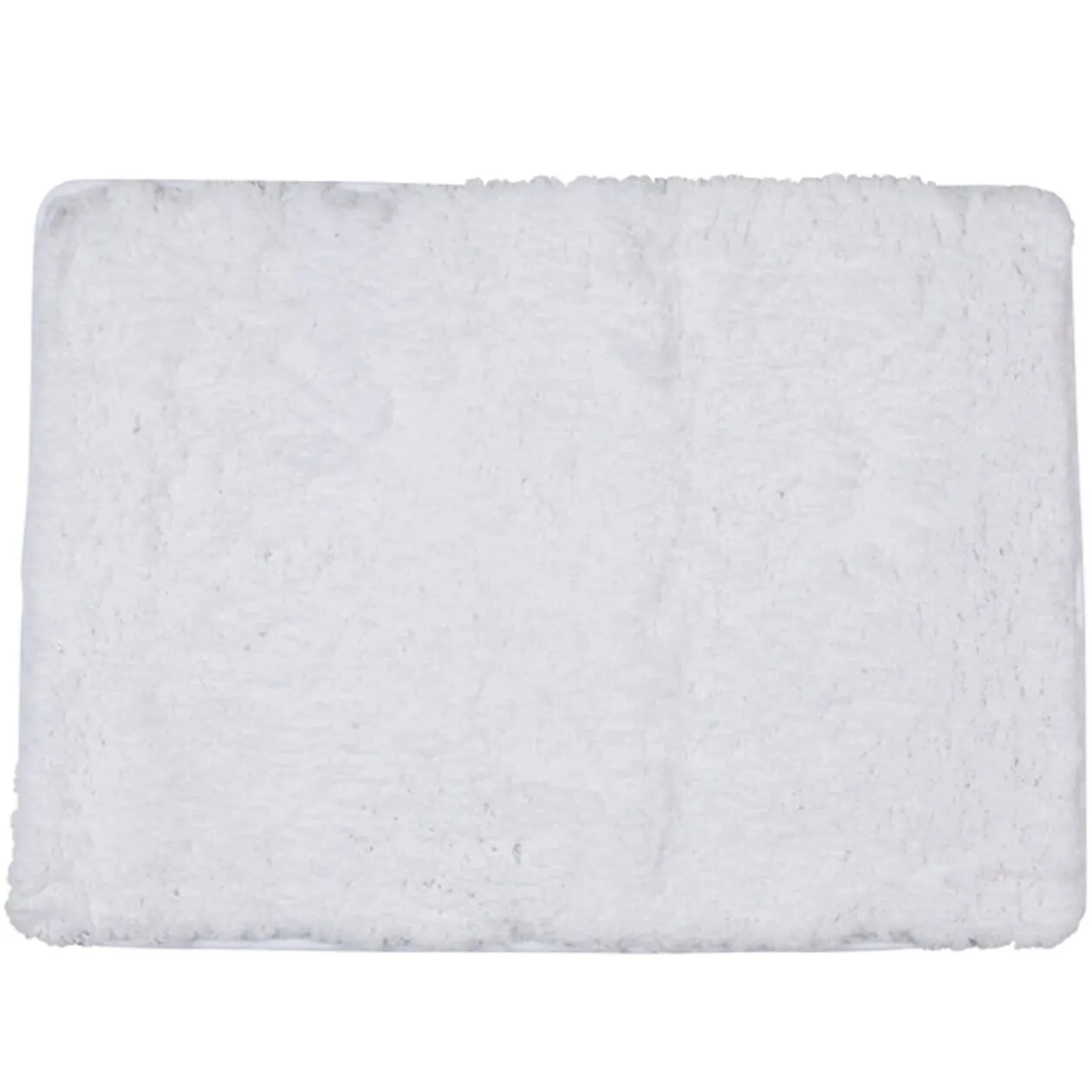 Tapis salle de bain blanc, dim. 70×50 cm, polyester et latex.