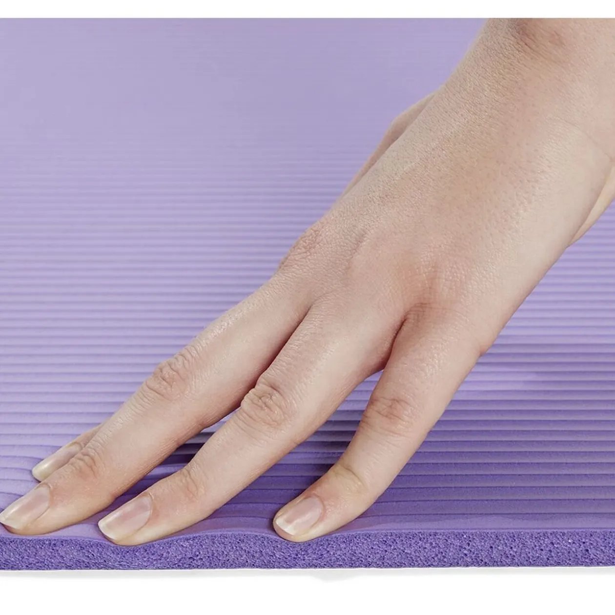 Tapis de yoga épais en caoutchouc violet, offrant confort et stabilité pendant vos séances.