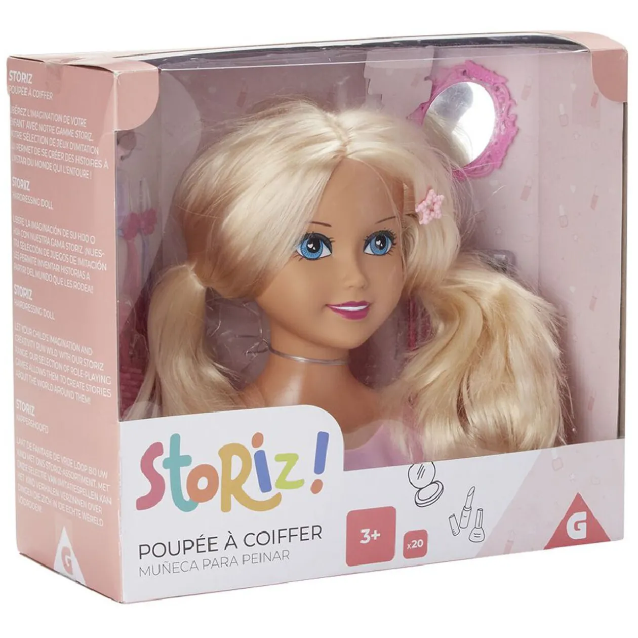 Amuse toi à la coiffeuse et maquilleuse grâce à ce kit !Tête à coiffer avec brosse à cheveux, miroir, élastiques, pinces, et accessoires de maquillage.