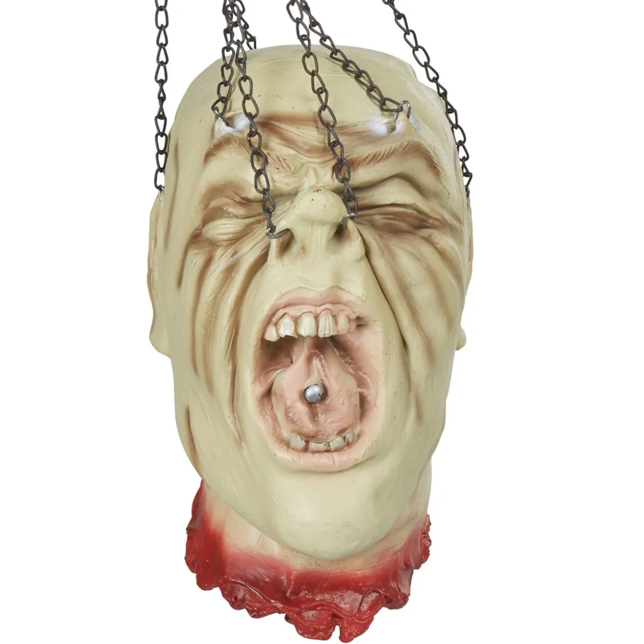 Frayeur garantie avec cette tête coupée à suspendre, idéal pour décorer votre fête d’Halloween.