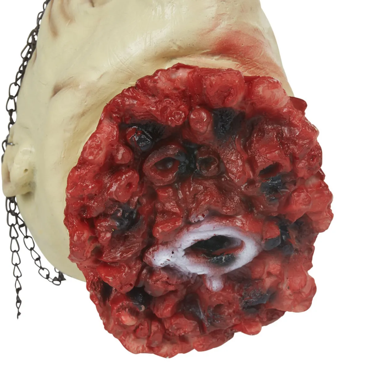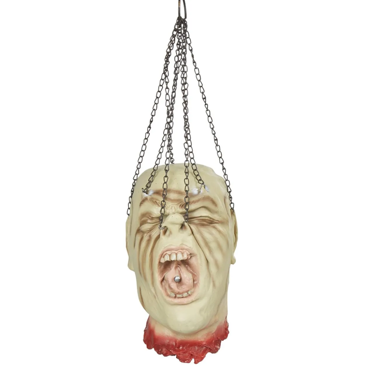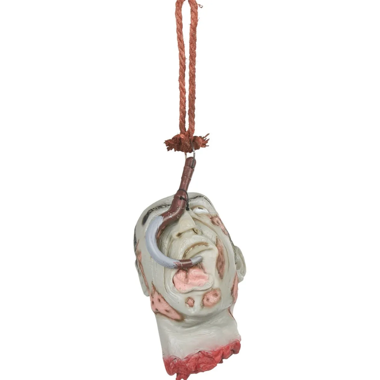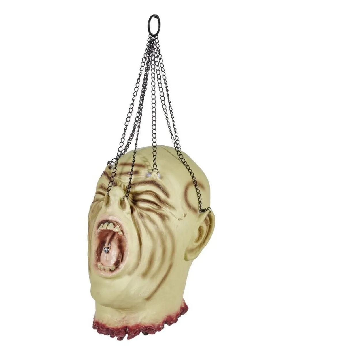 Frayeur garantie avec cette tête coupée à suspendre, idéale pour décorer votre fête d’Halloween.