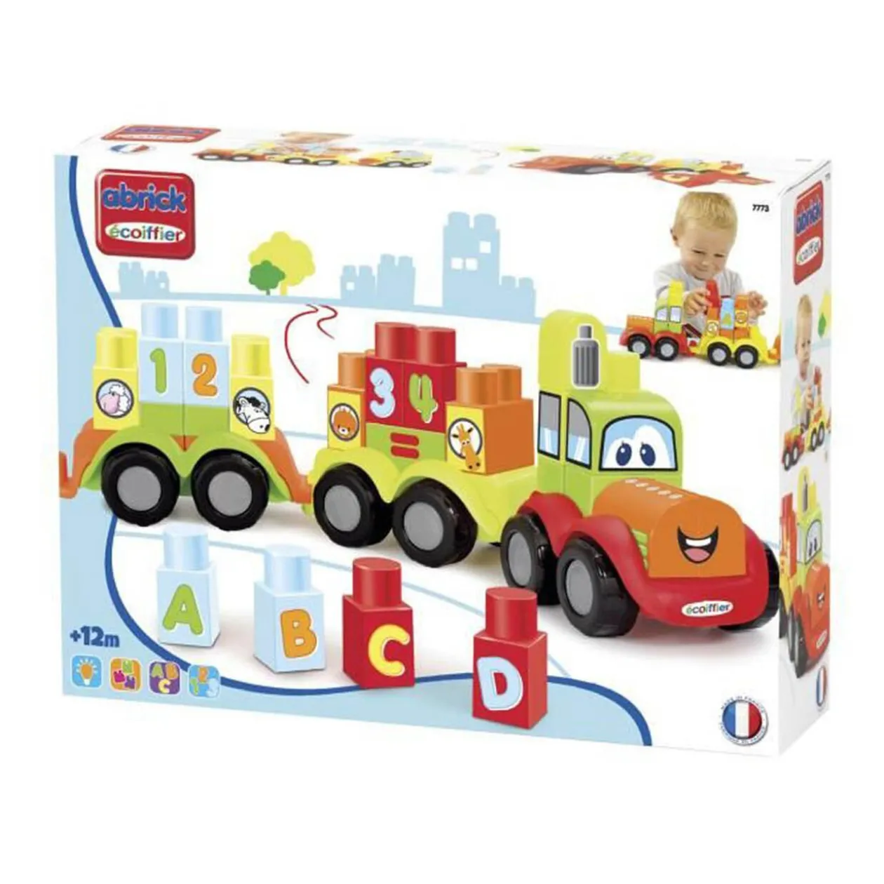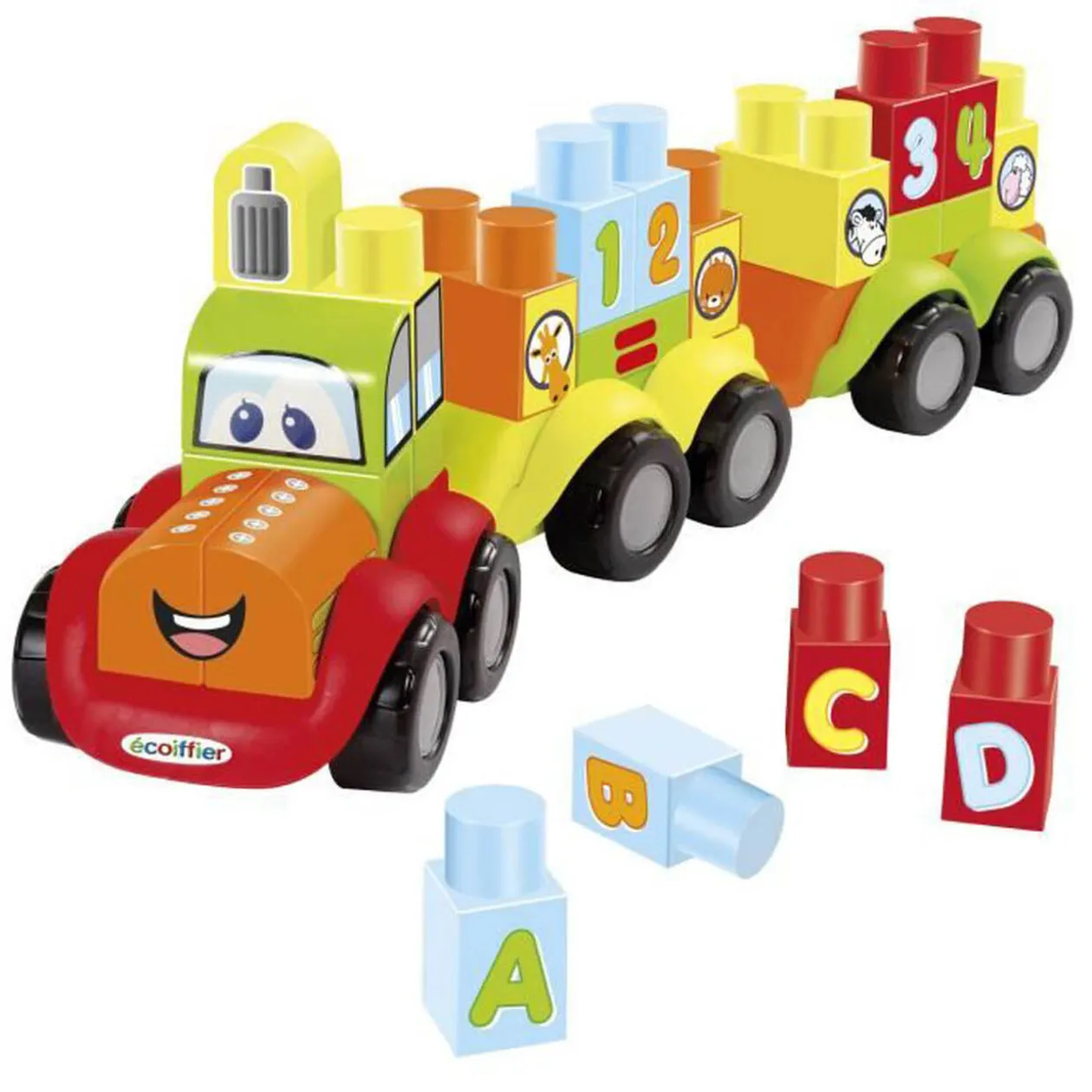 Découvrez le train brique premier âge à construire à l’aide de ses 3 wagons et ses 6 briques colorées avec chiffres, lettres et animaux rigolos représentés. Idéal pour apprendre en s’amusant de façon ludique !