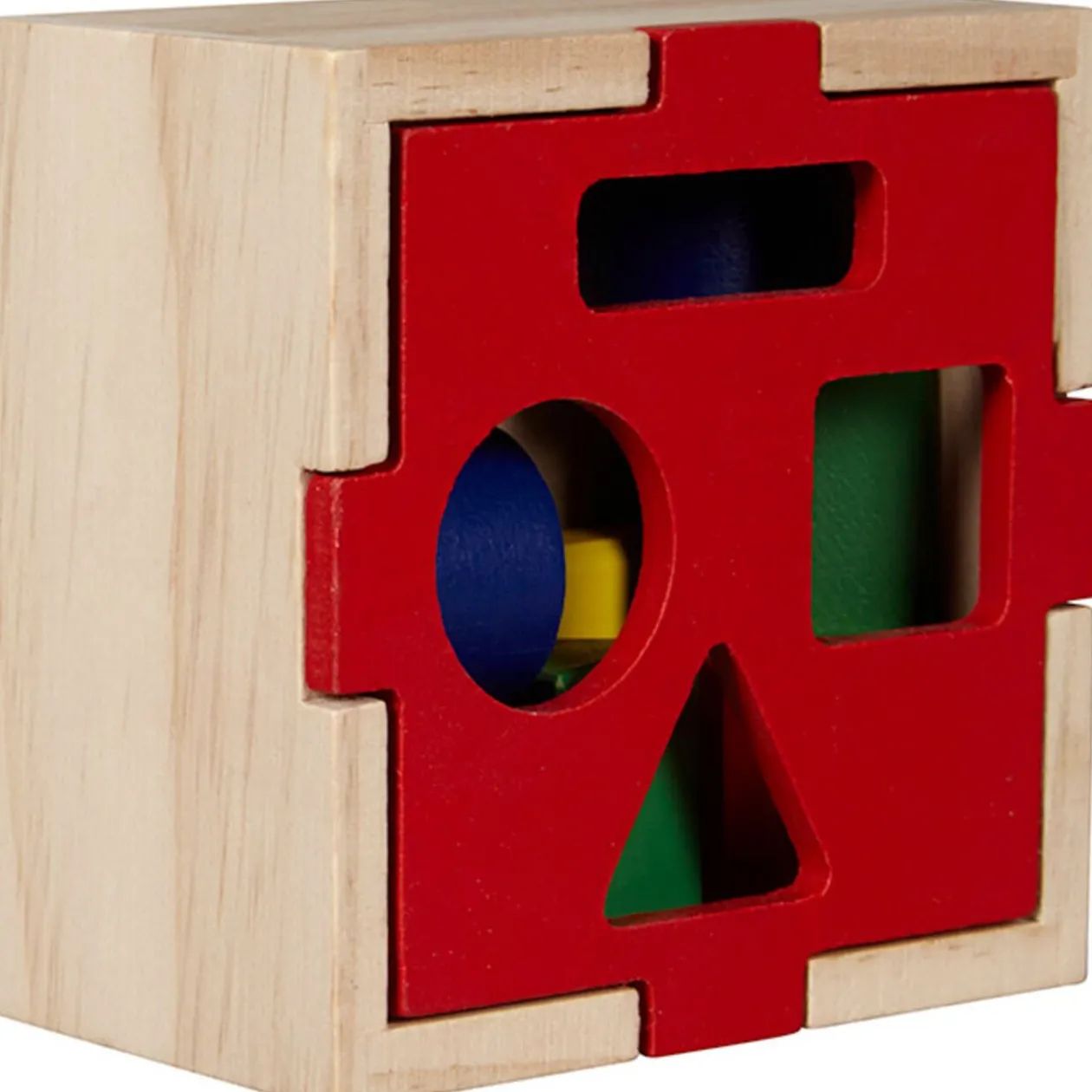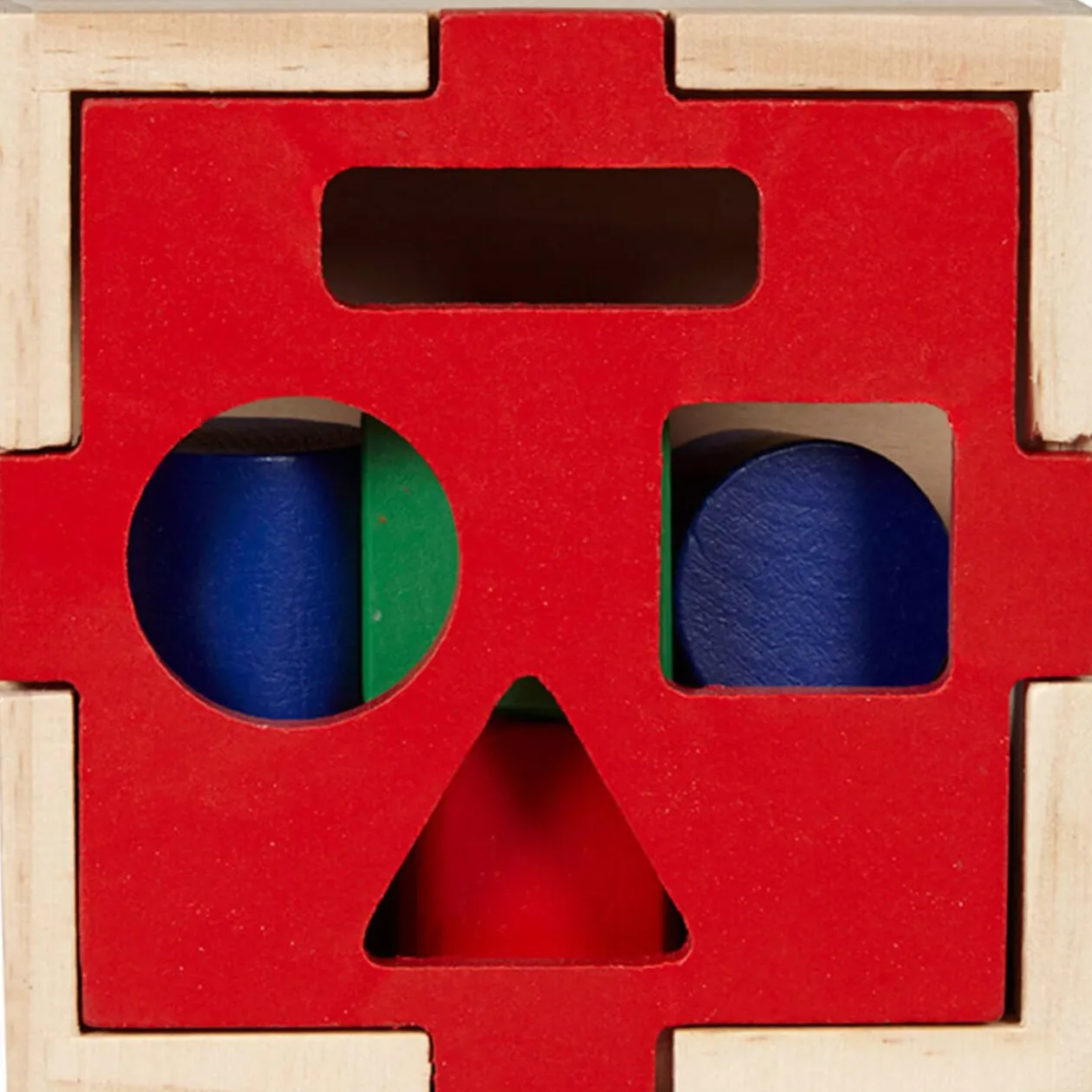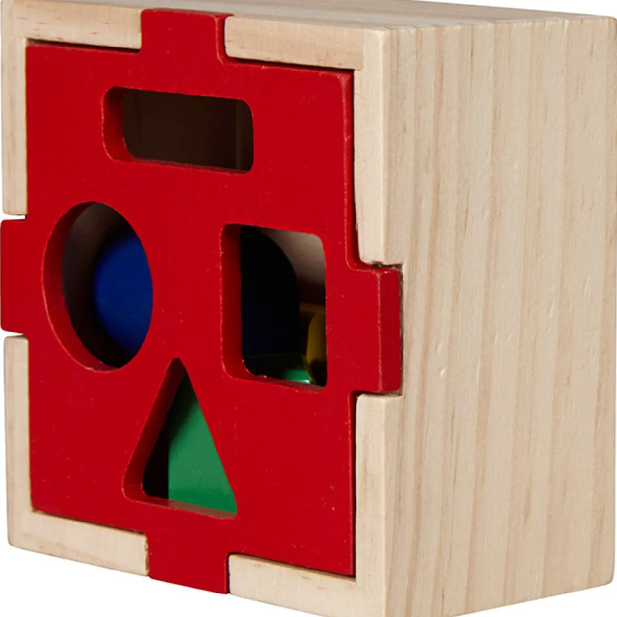 Trieur de formes 8 pièces en bois, boîte dim. 11x11x6 cm. Dès 18 mois.