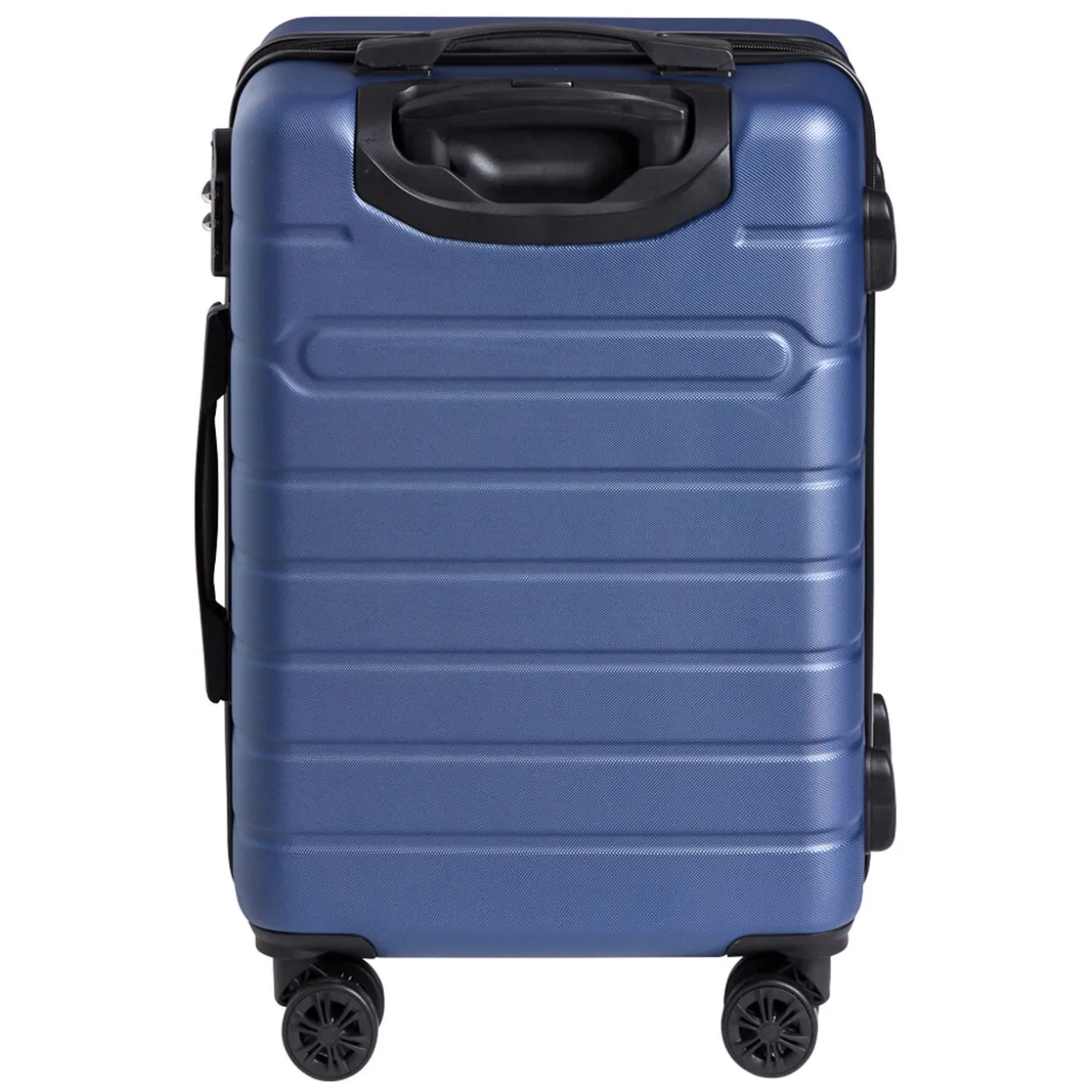 Valise rigide en ABS résistant de couleur bleu marine. Taille S. A la fois légère, pratique et résistante aux chocs, idéale pour tous vos déplacements en voiture, en avion ou en train!