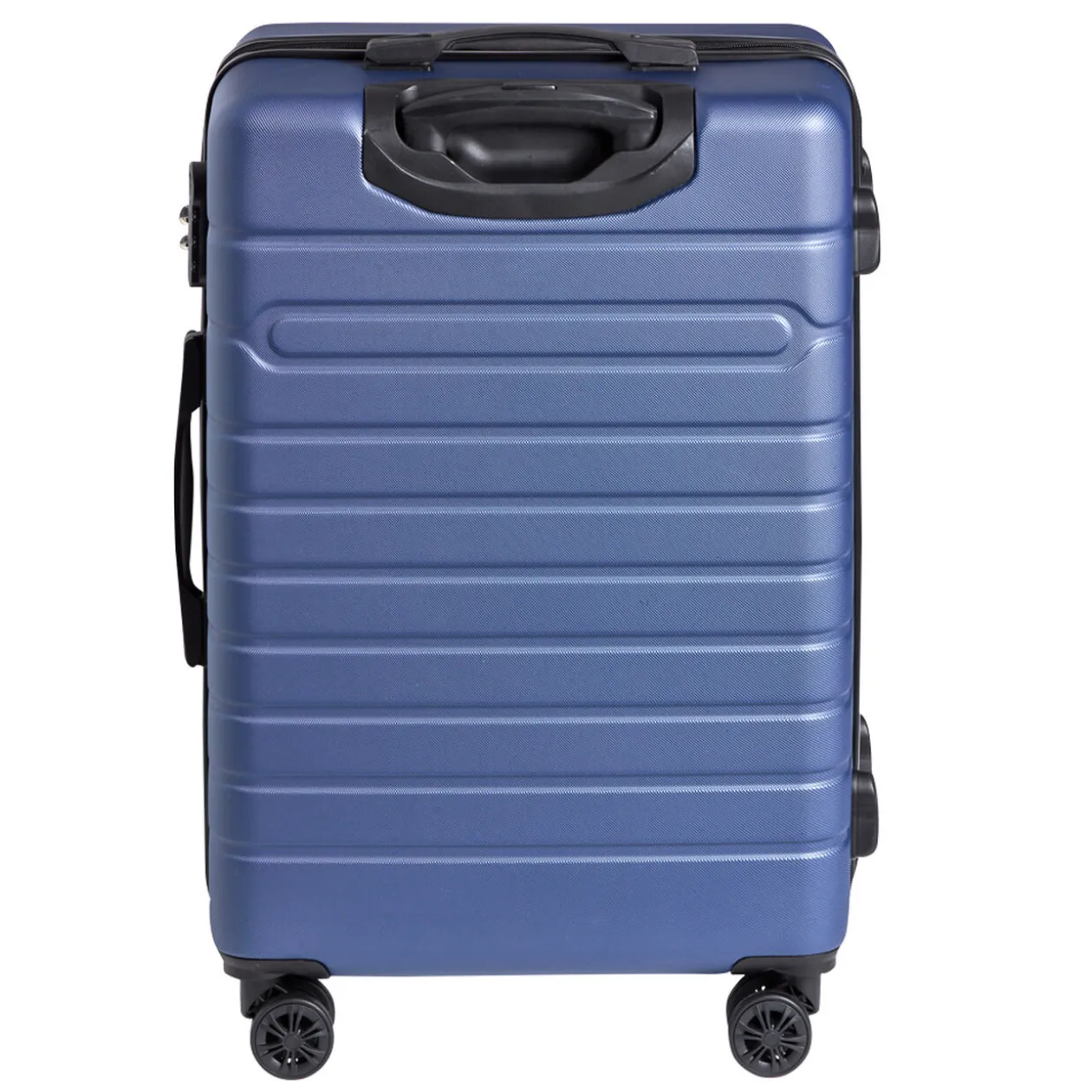 Valise rigide en ABS résistant de couleur bleu marine. Taille M. A la fois légère, pratique et résistante aux chocs, idéale pour tous vos déplacements en voiture, en avion ou en train!