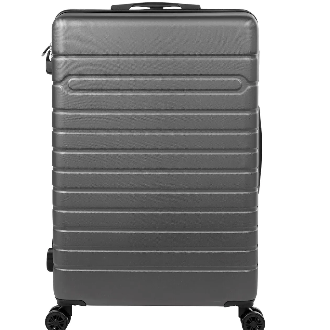 Valise rigide en ABS résistant de couleur gris foncé. Taille L. A la fois légère, pratique et résistante aux chocs, idéale pour tous vos déplacements en voiture, en avion ou en train!