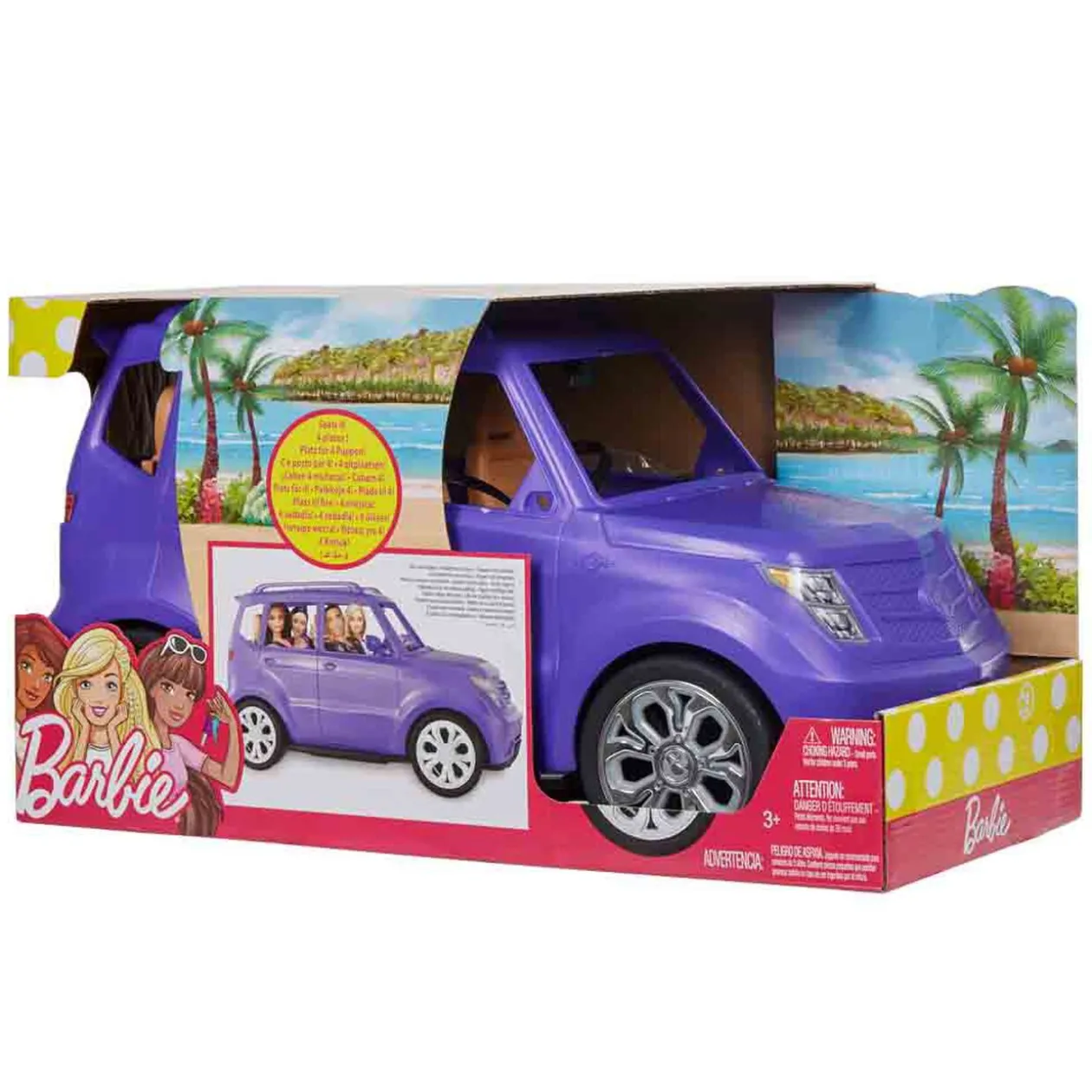 Installe tes poupées mannequins préférées dans cette superbe voiture 4×4 mauve de la marque Barbie, dotée de 4 places avec ceintures de sécurité et deux gobelets de café pour la route!