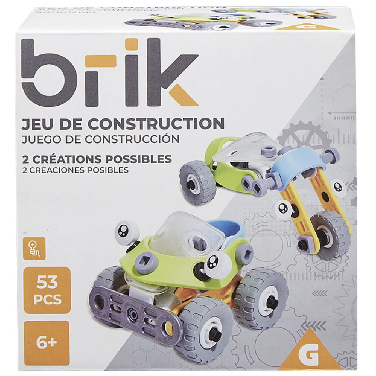 Véhicule à construire en plastique selon 2 modèles possibles.