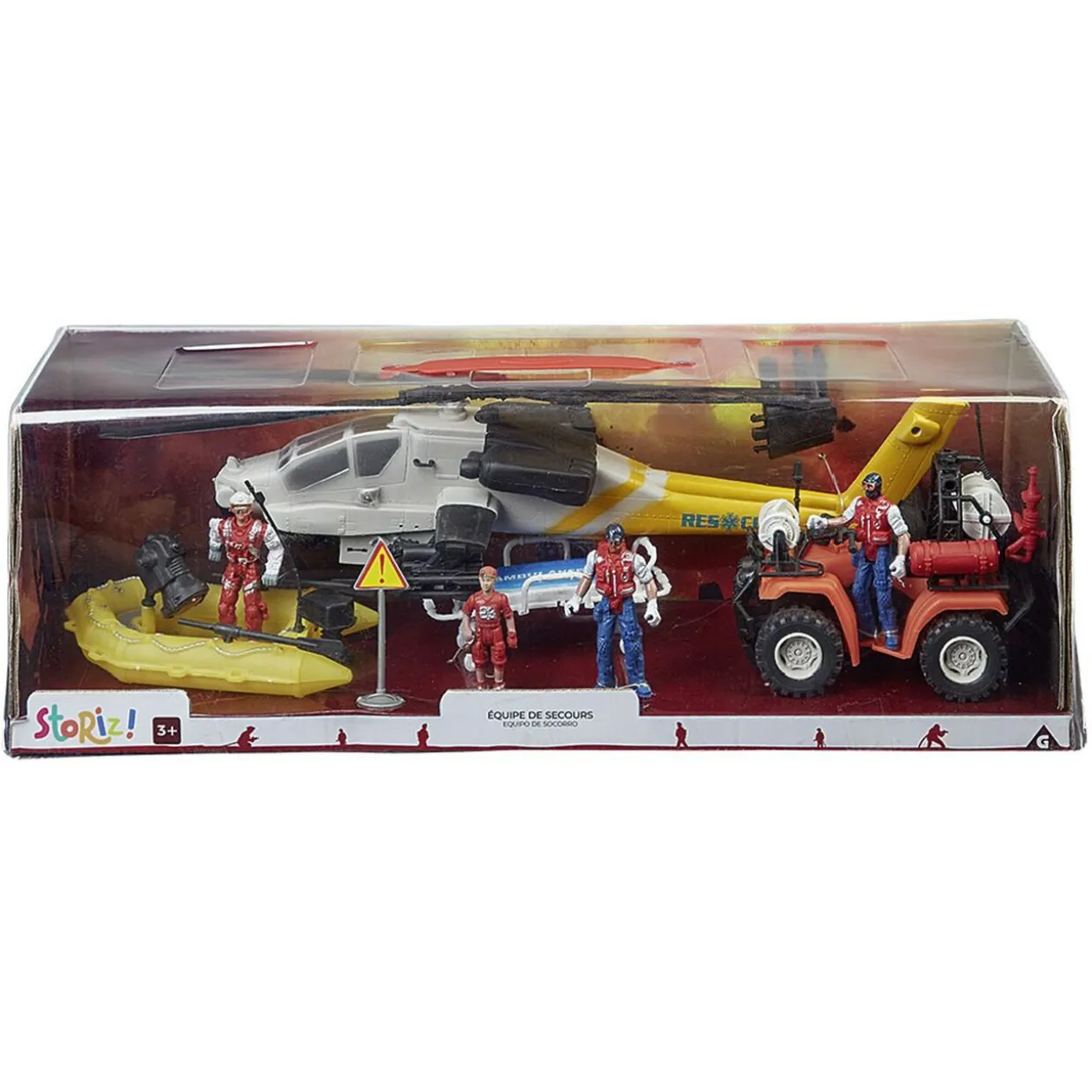 Set de 3 véhicules de secours et de remorquage avec figurines et accessoires de signalisation.