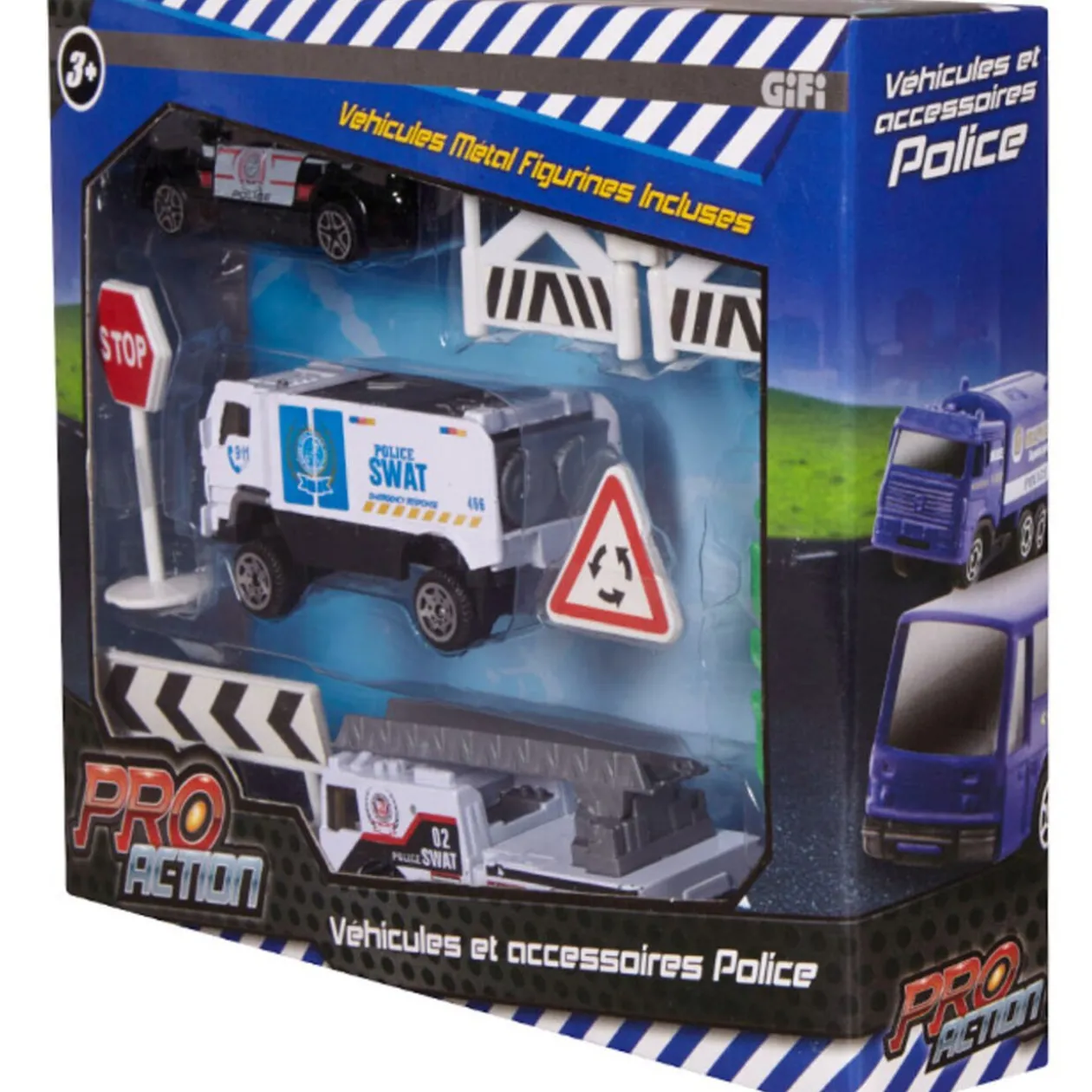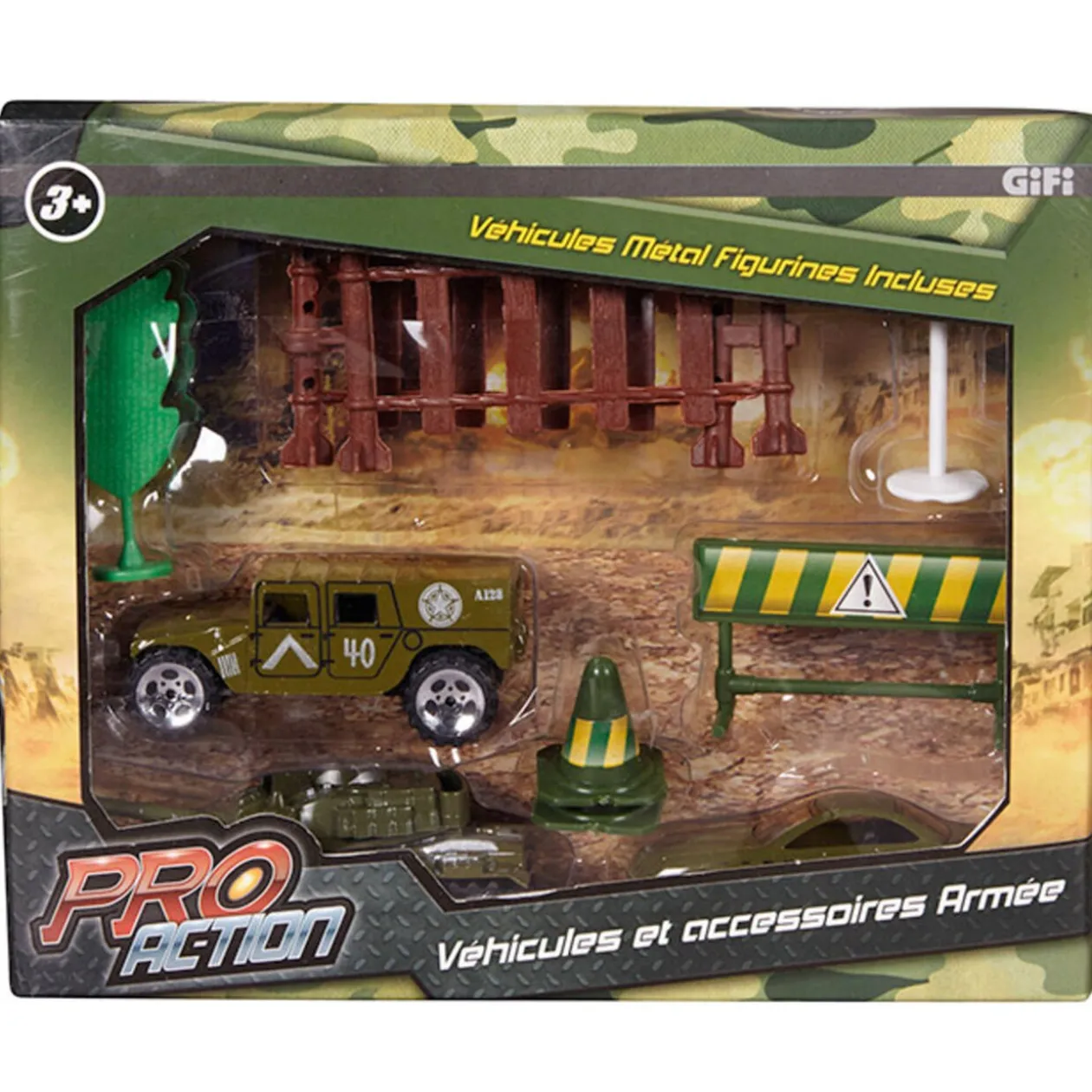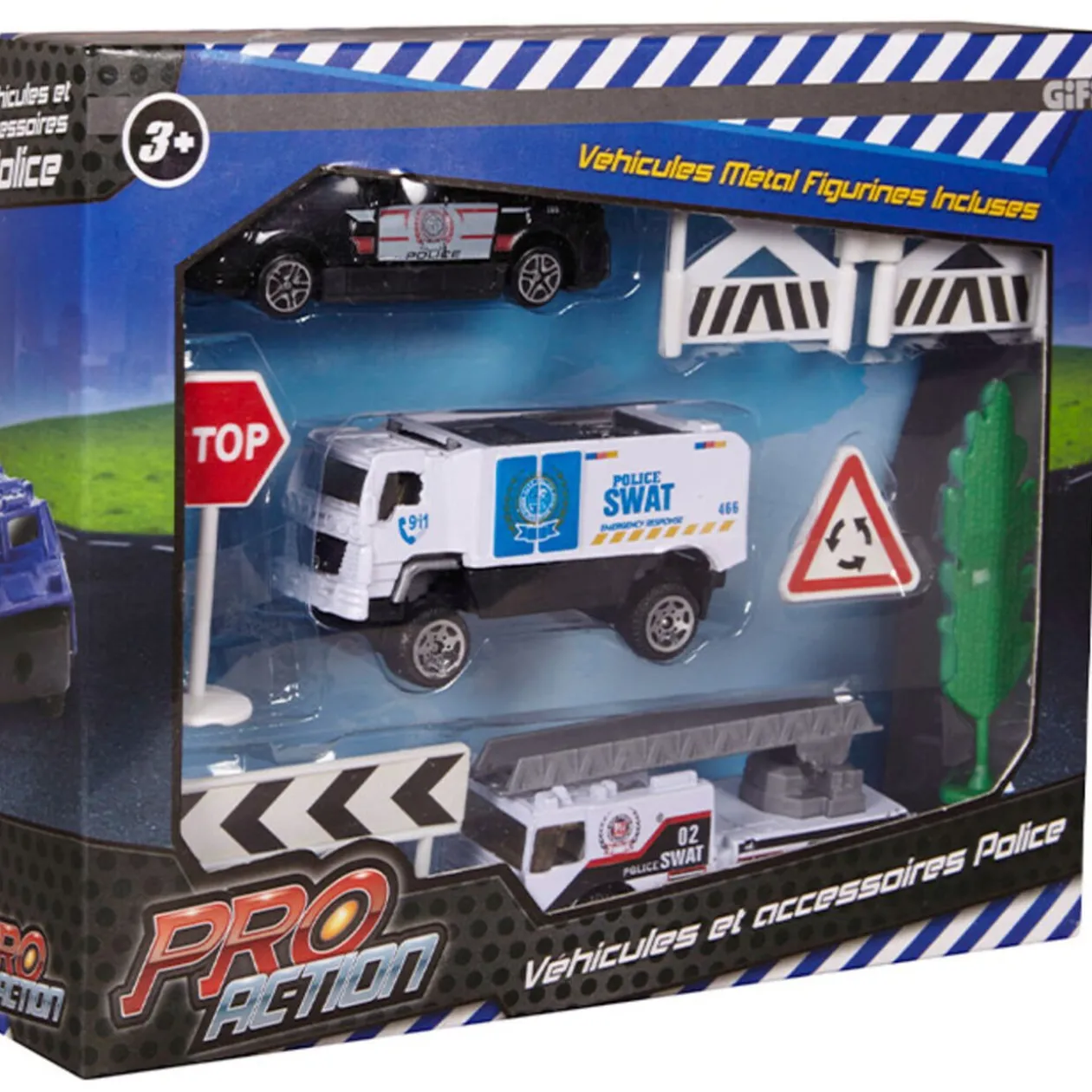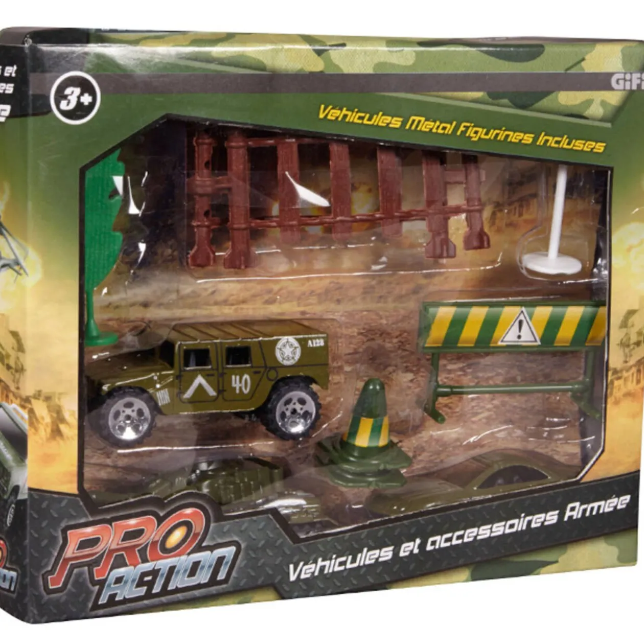 Véhicule en métal et accessoires. 3 modèles : armée, police, pompier. Dès 3 ans.