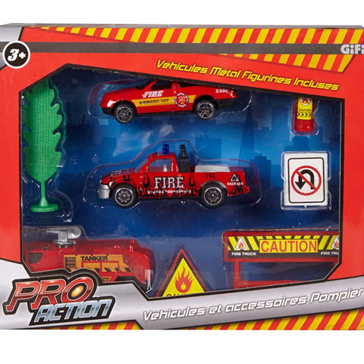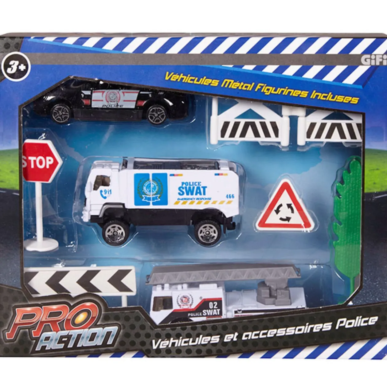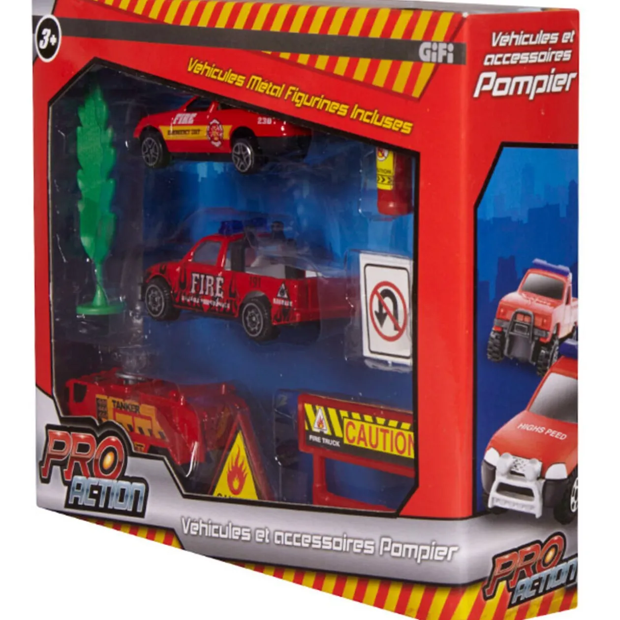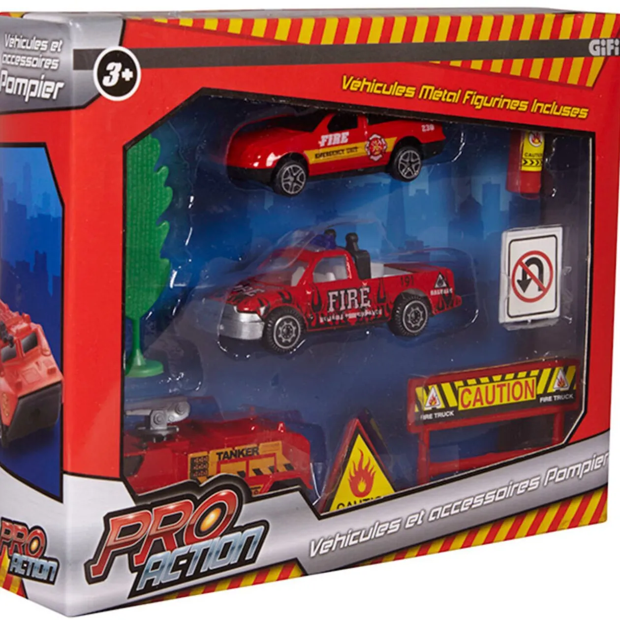 Véhicule en métal et accessoires. 3 modèles : armée, police, pompier. Dès 3 ans.