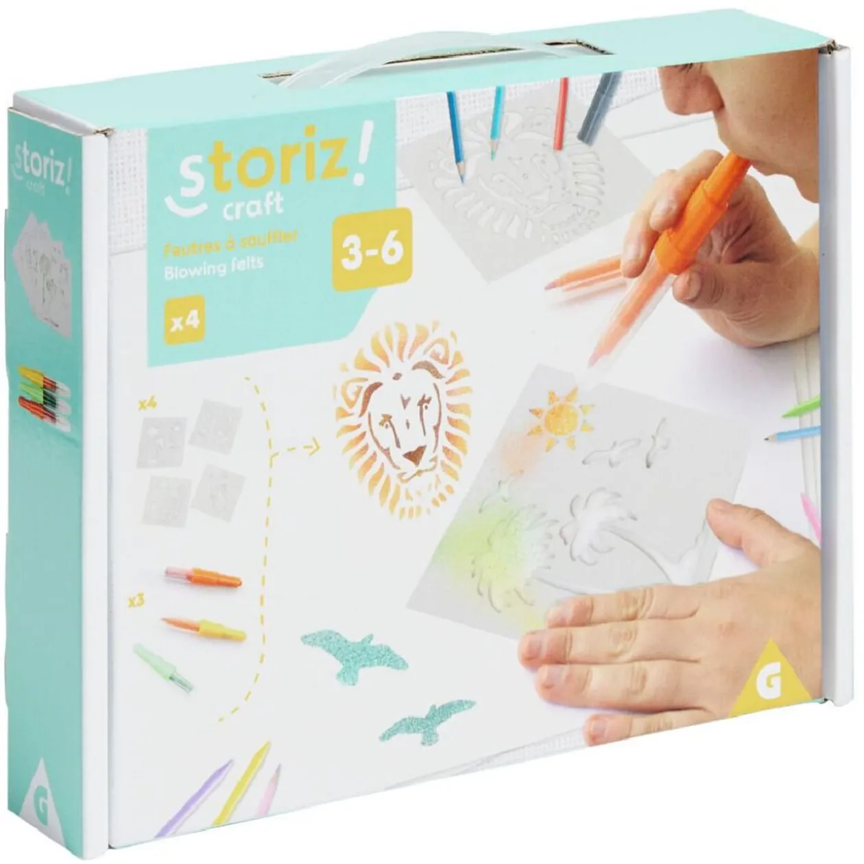 Ce kit créatif te permettra de réaliser de magnifiques dessins à l’aide de pochoirs et feutres à souffler !