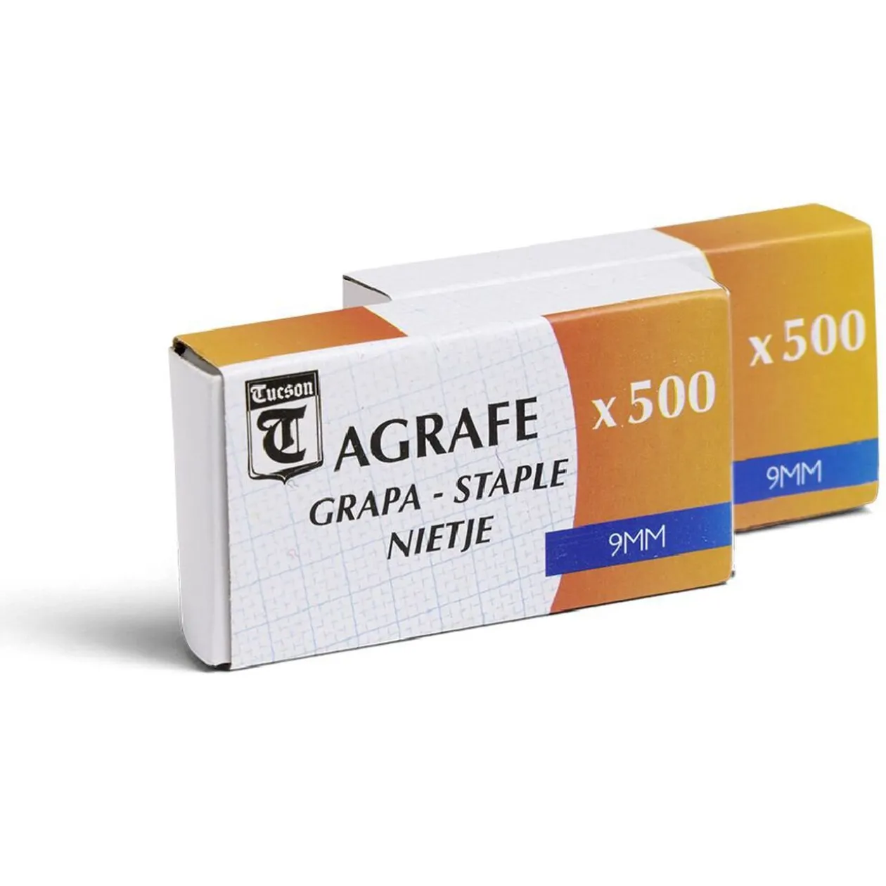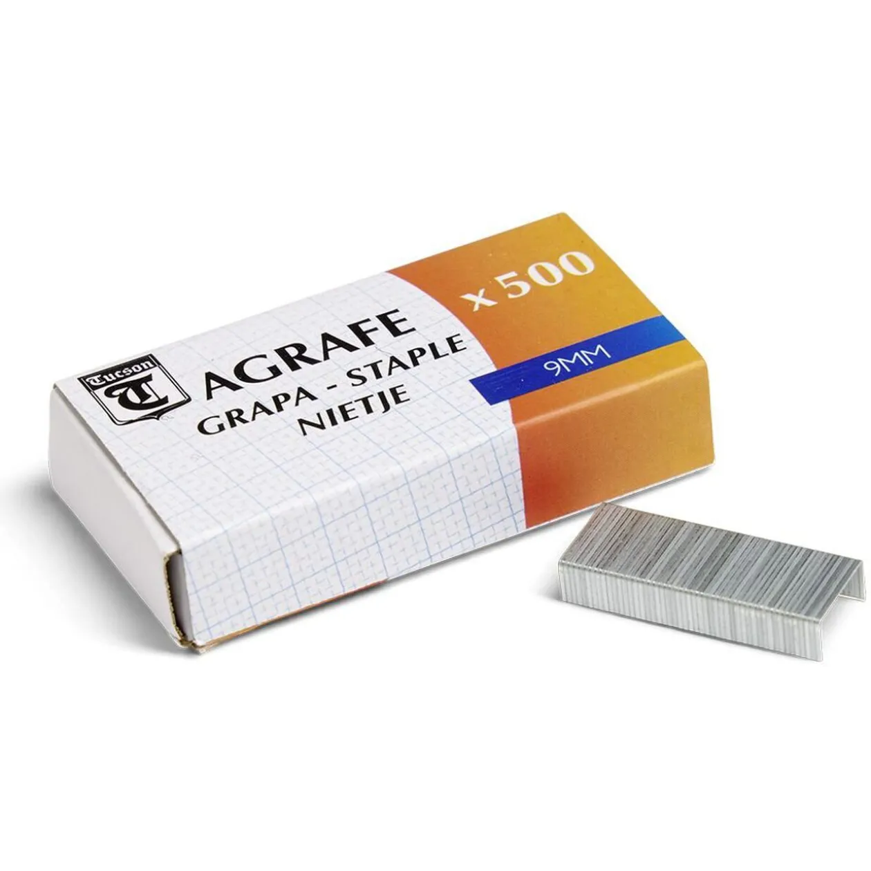 Lot de 2 blocs de 500 agrafes 9mm soit 1 000 pièces au total.