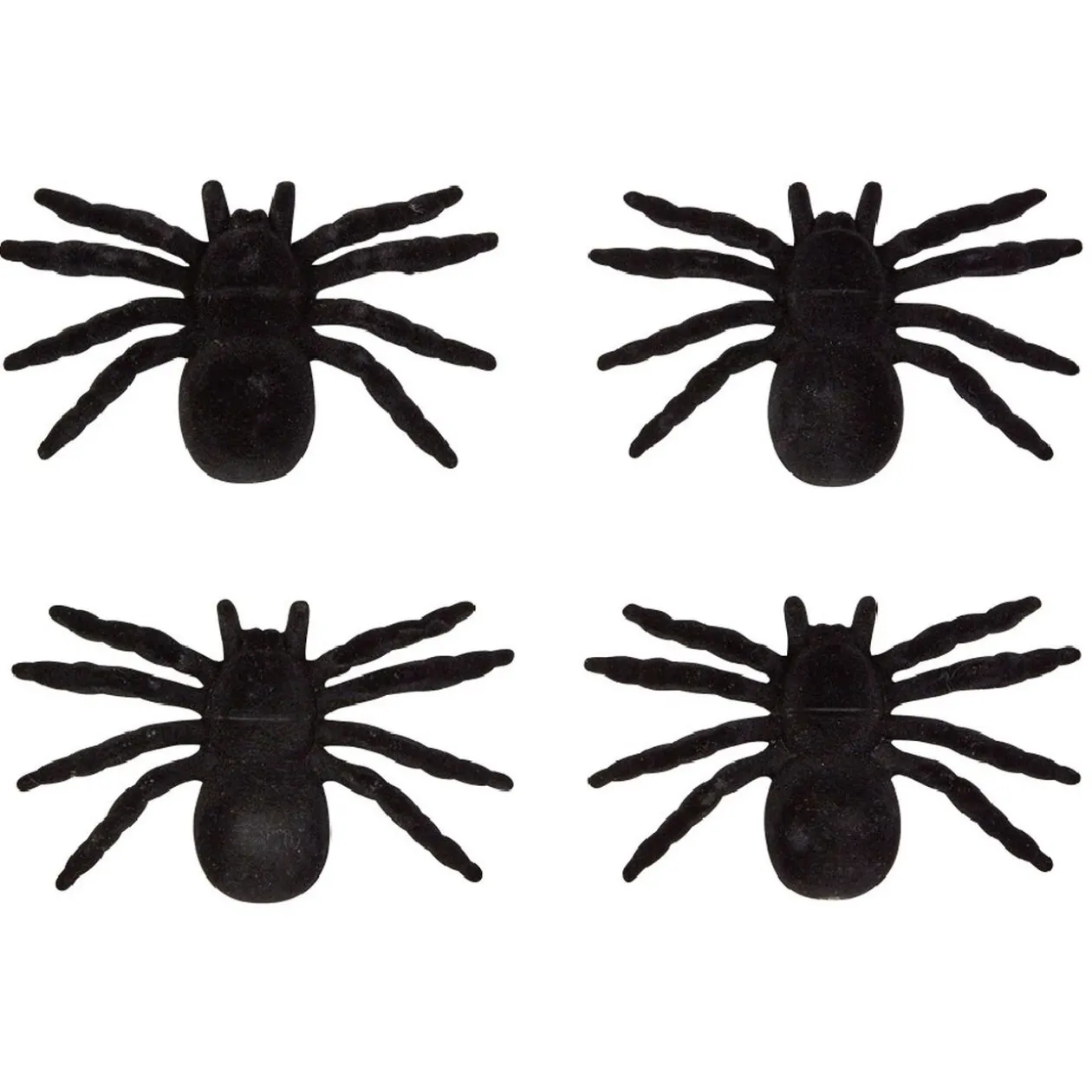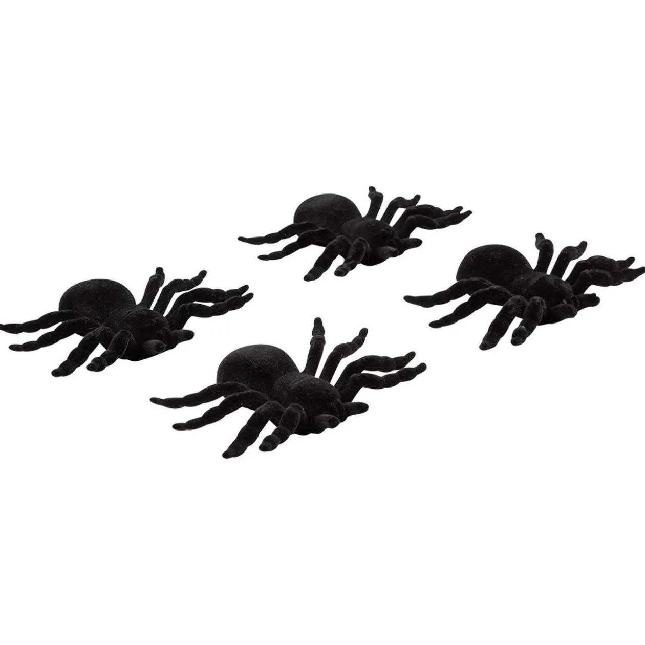 4 fausses araignées en plastique noir, indispensable pour une décoration d’Halloween réussie !