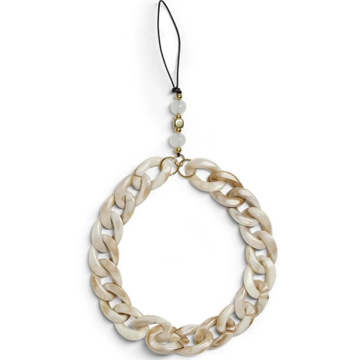 Fonctionnel et tendance, ce bijou de téléphone conçu avec des mailles en plastique beige est idéal pour garder son portable à portée de main et le retrouver plus facilement au fond du sac ou au milieu des effets personnels !