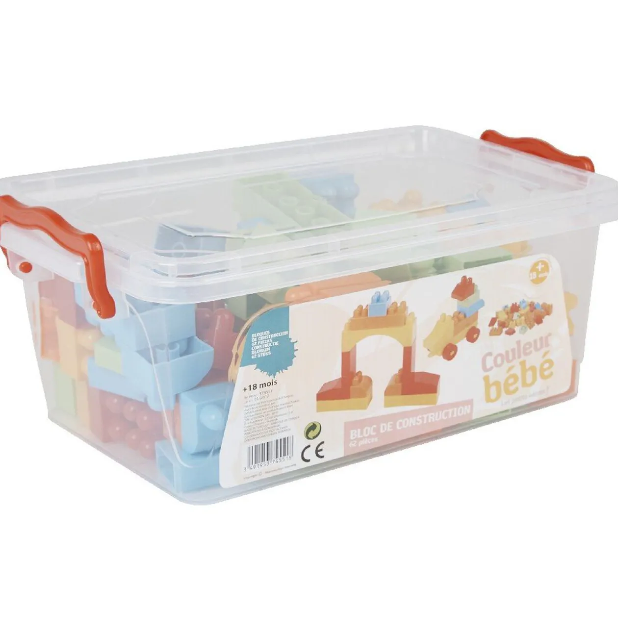 Bloc de construction 62 pièces en polypropylène.