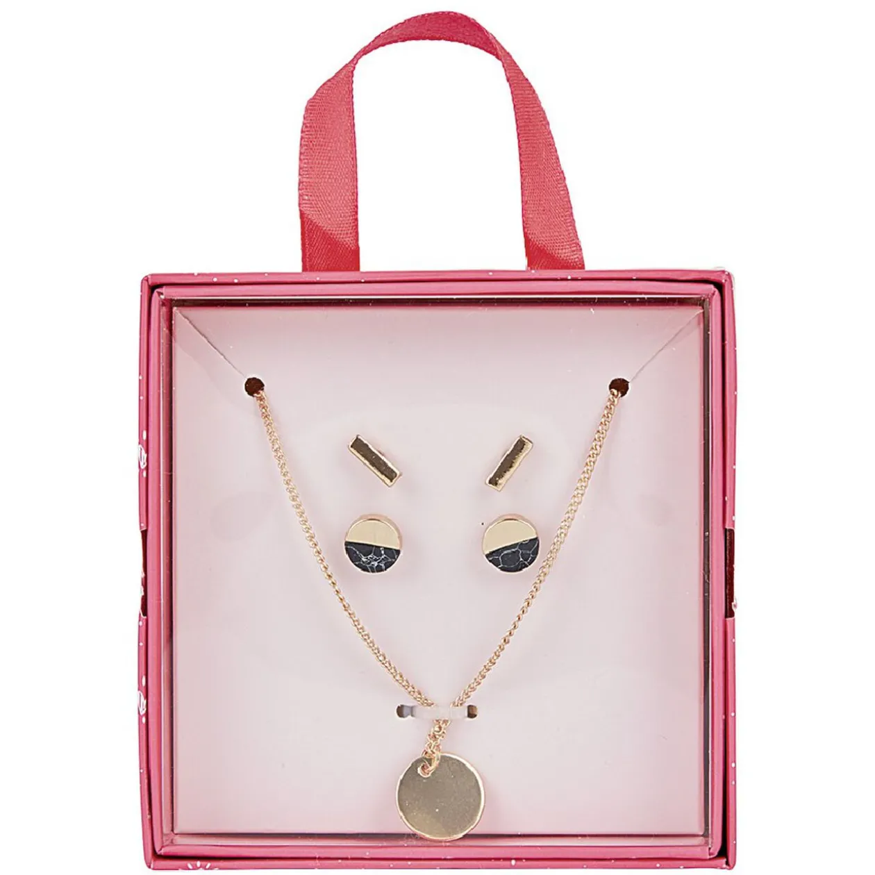 Votre découvrirez dans ce jolie écrin, 5 bijoux en métal doré pour assortir avec l’ensemble de vos tenues.