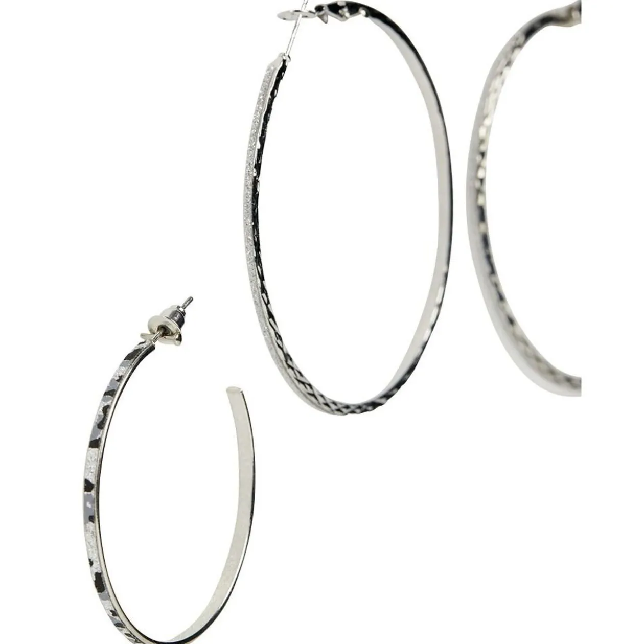 Lot de 2 paires de créoles : gris pailleté + gris léopard