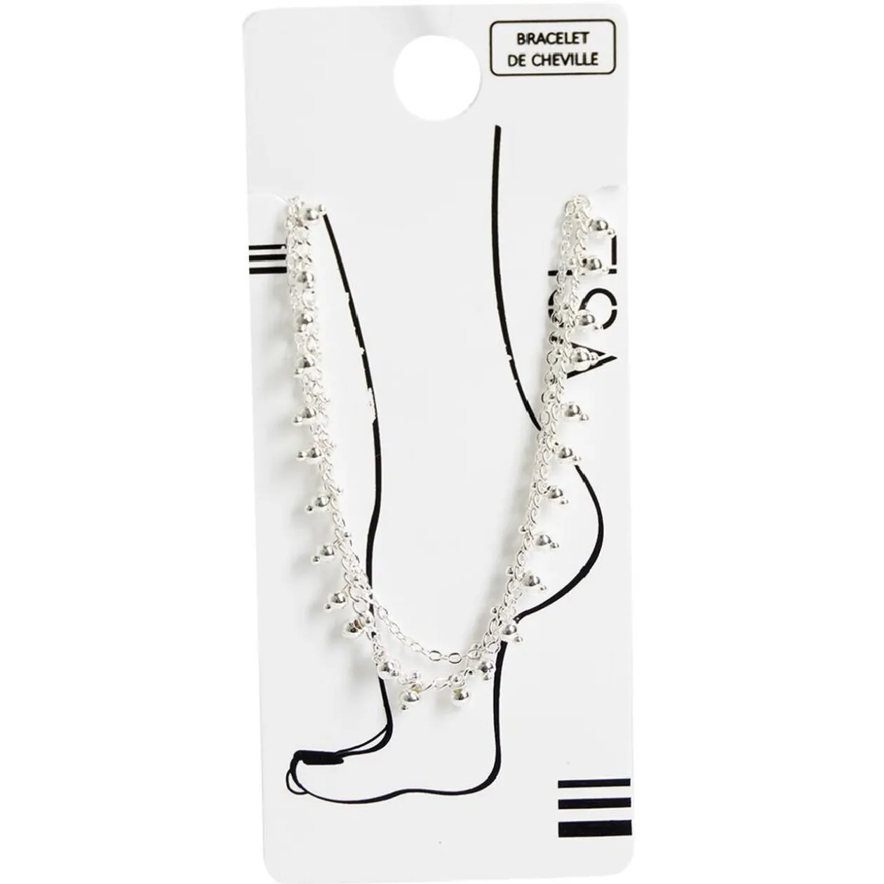 Bracelet chaîne de cheville avec strass et perles argentées.