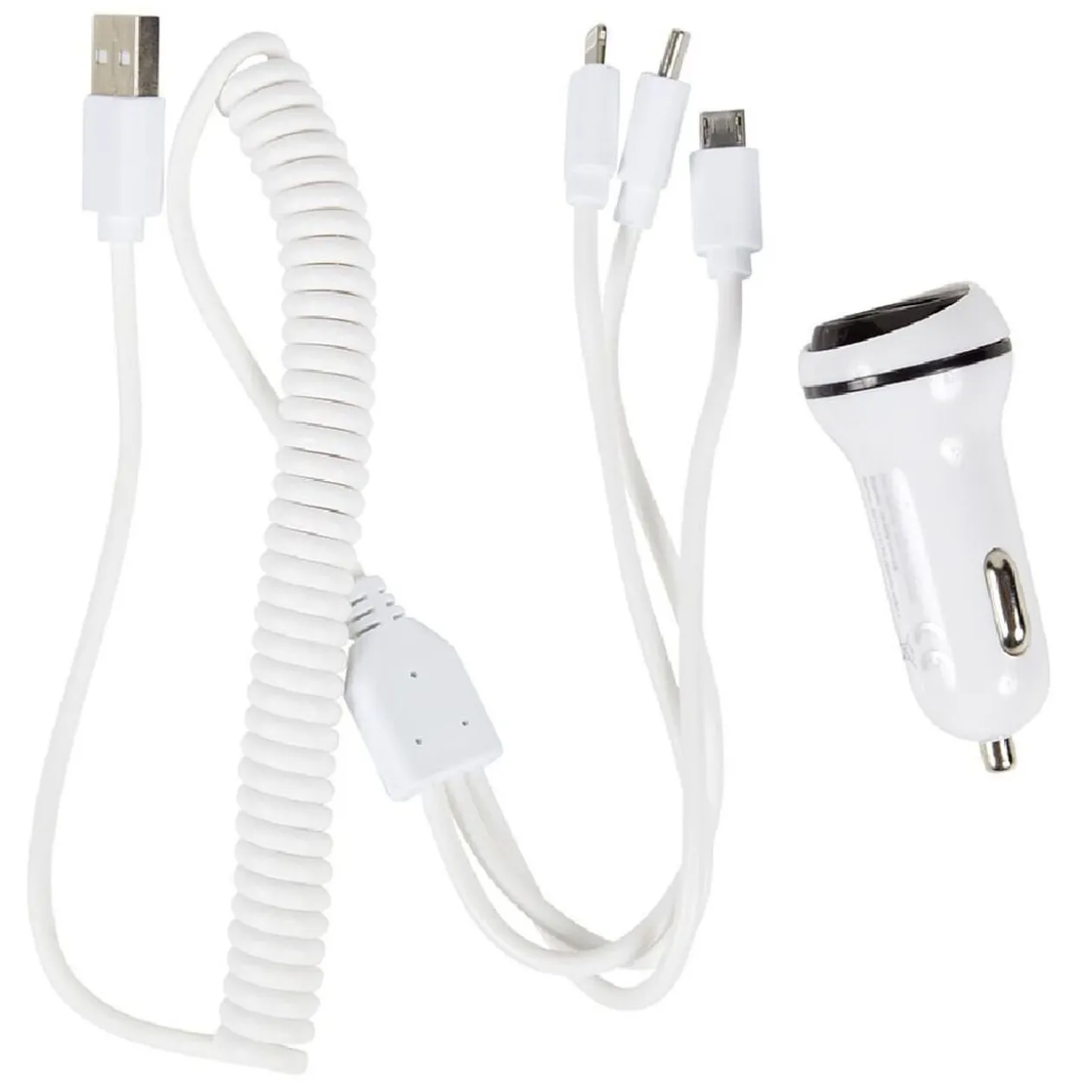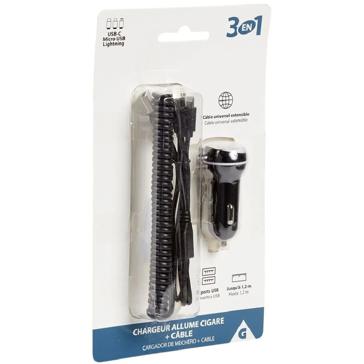 Kit chargeur pour prise allume-cigare avec câble 3 en 1 extensible jusqu’à 1,2 m.