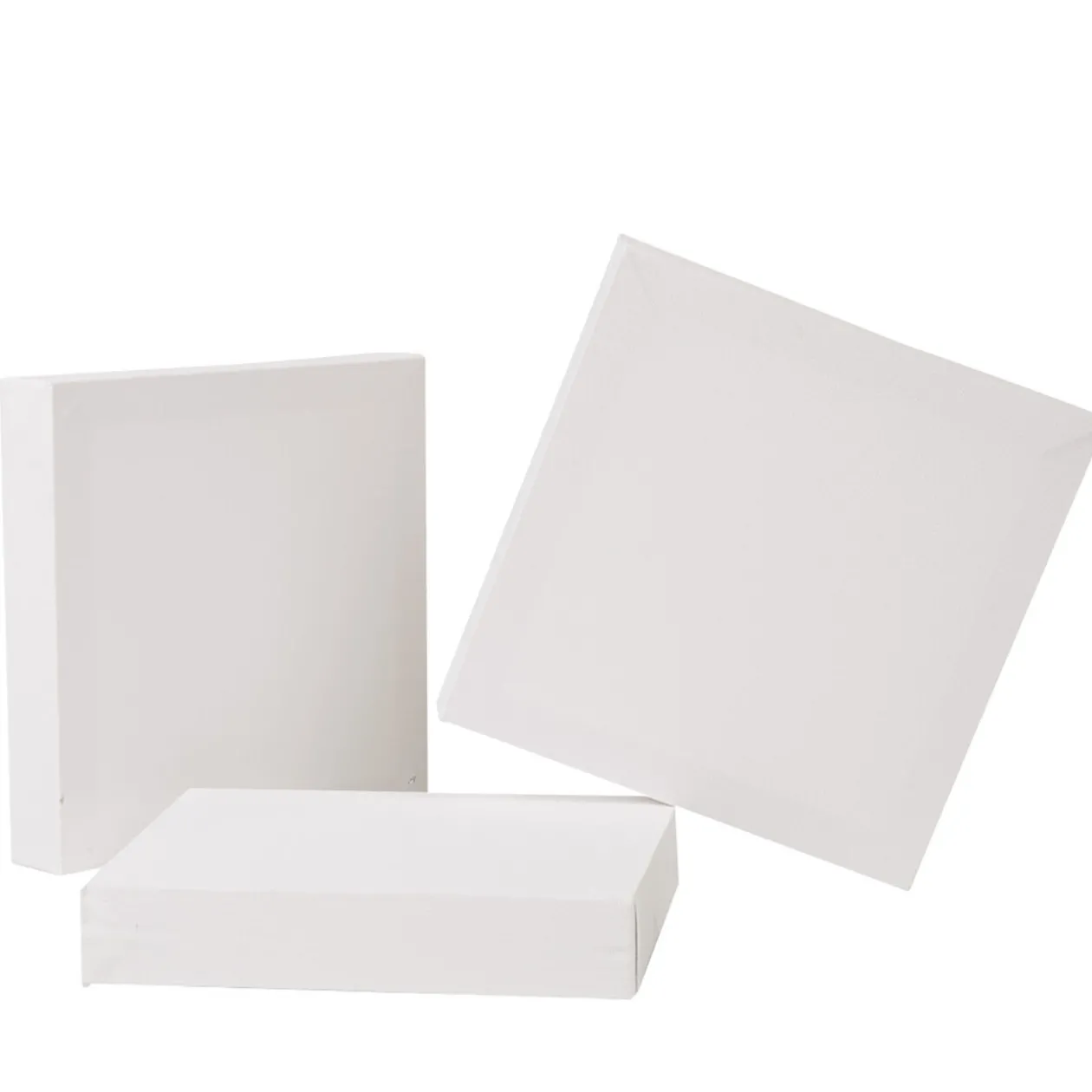 Lot de 3 châssis entoilés blancs, dim. 20x20x3,8 cm, coton.