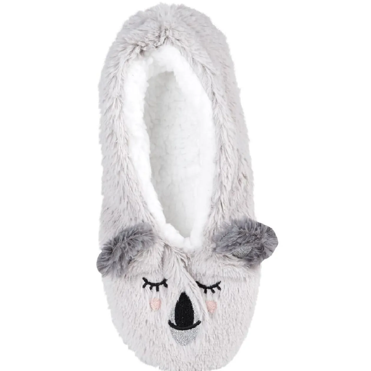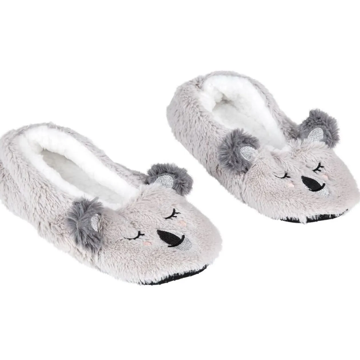 Paire de chaussons ballerines grises à motif tête de koala.