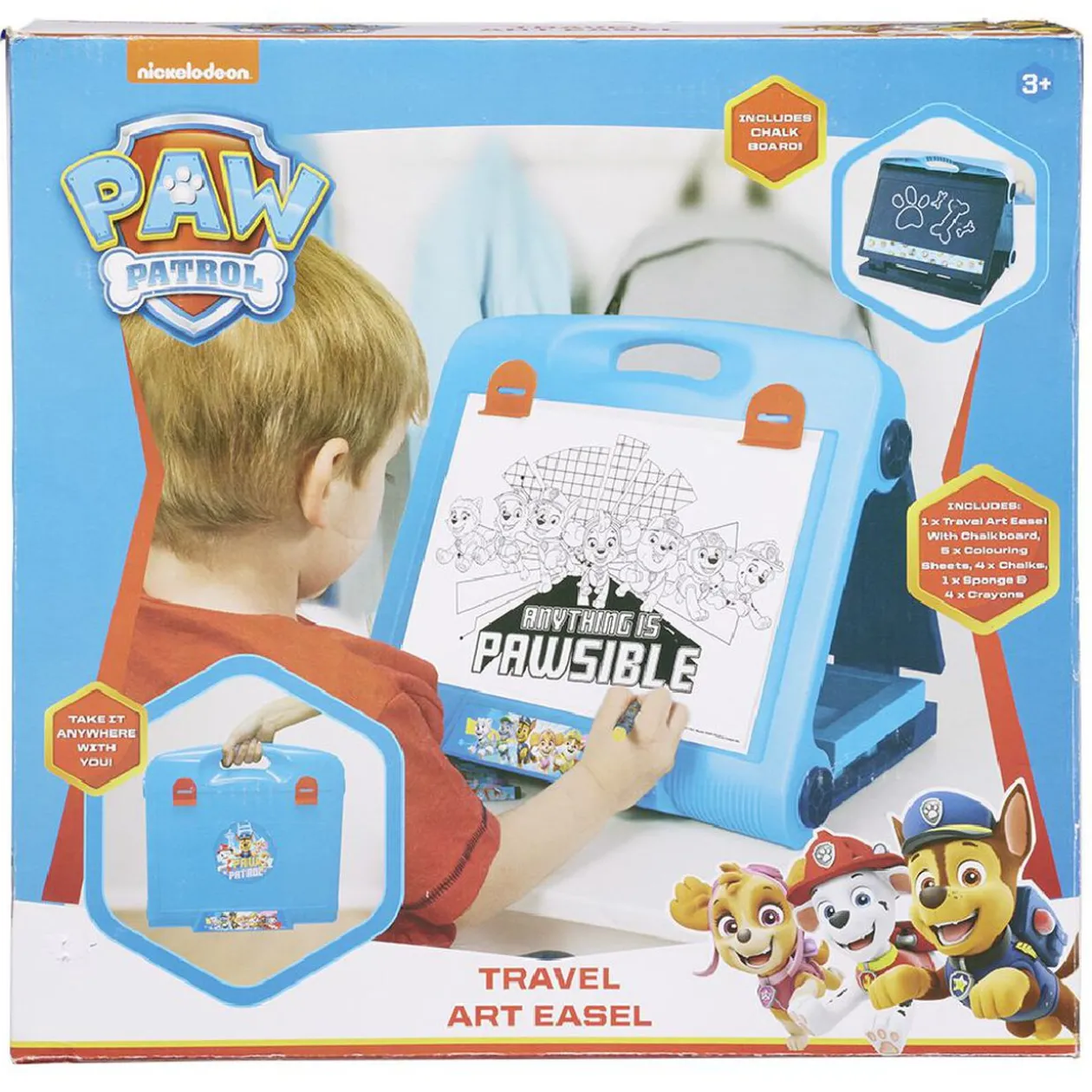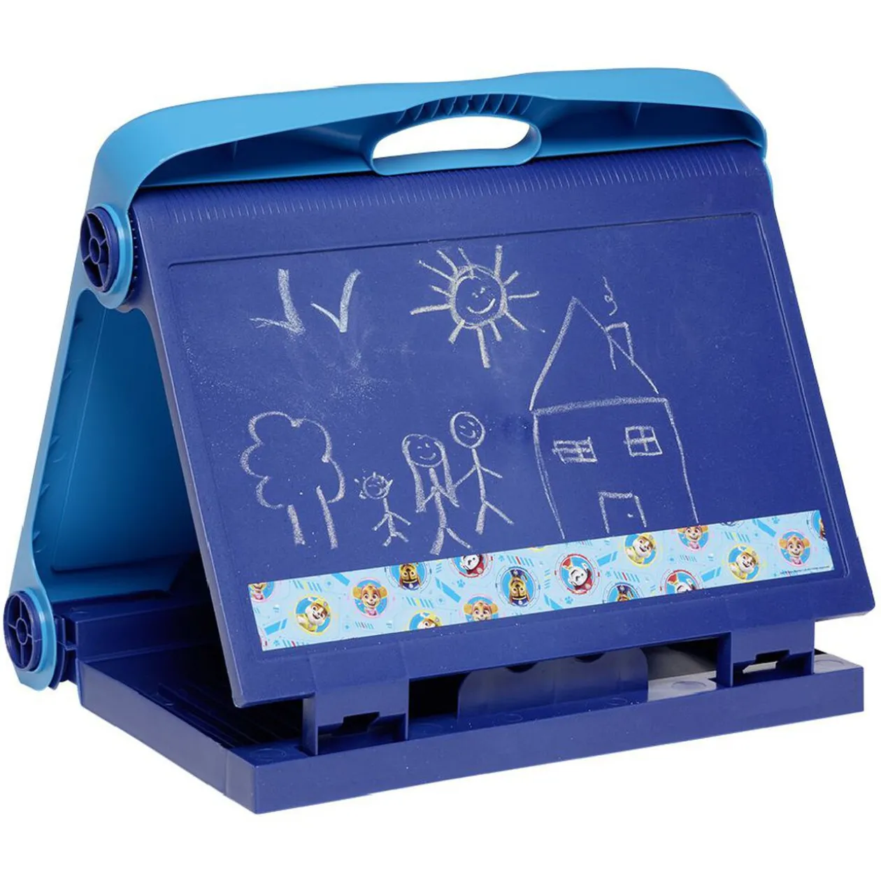 Chevalet de voyage La Pat Patrouille en plastique de couleur bleue.