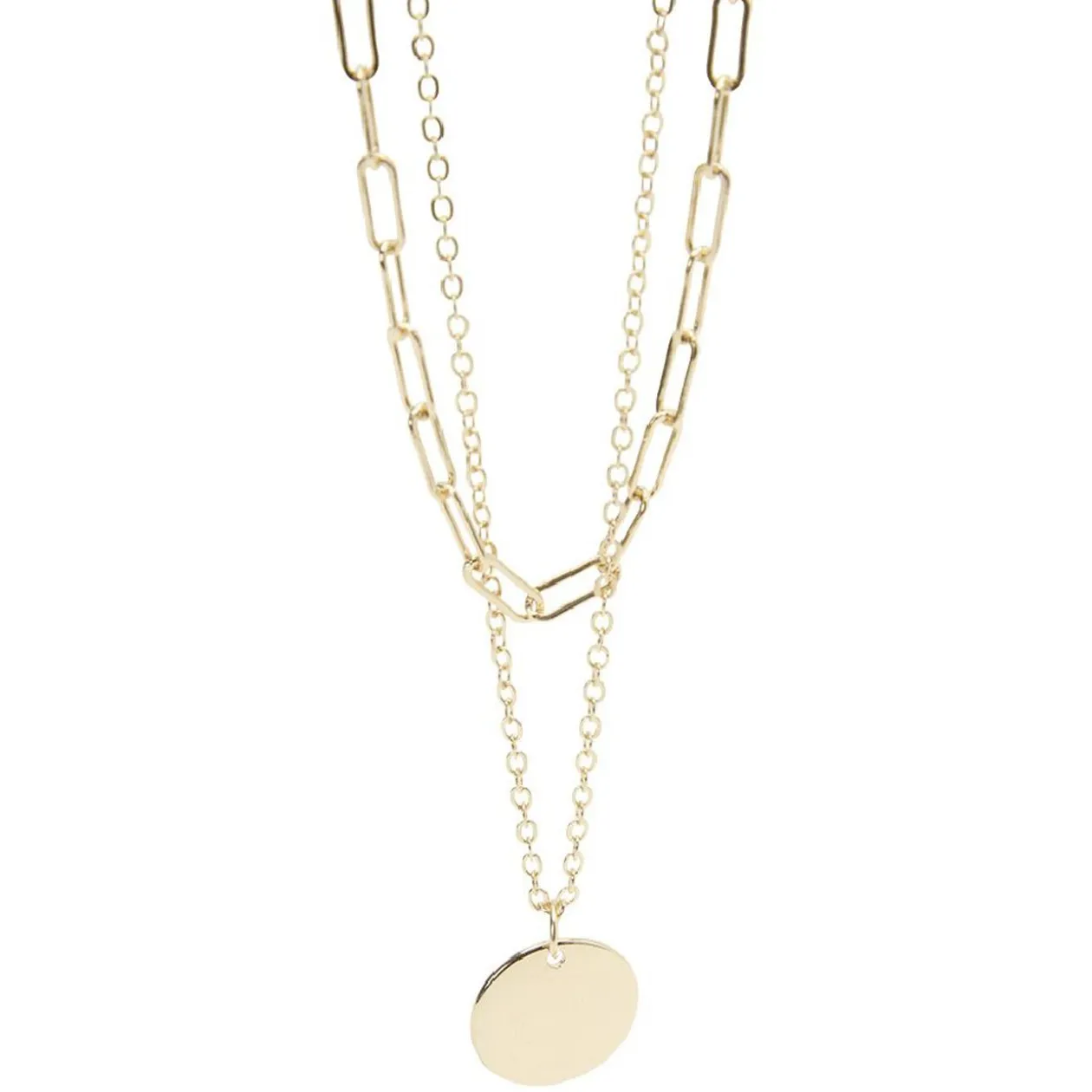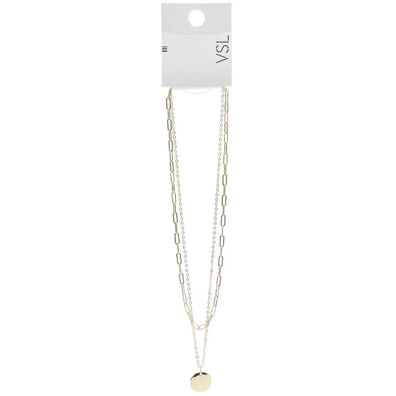 Sublimez un haut ou une robe avec ce joli collier à 2 rangs avec médaillon tout en métal doré.