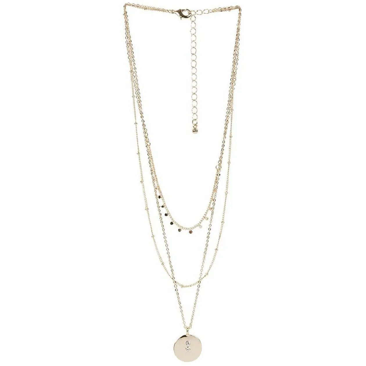 Collierà 3 rangs doré avec perles et pendentif.