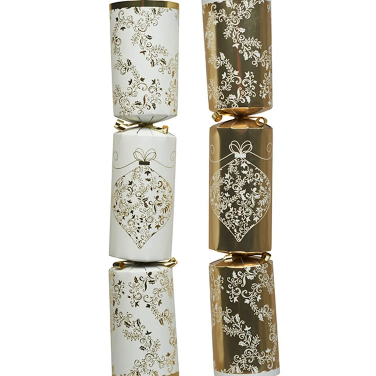 12 diablotins pour adultes, coloris doré / blanc. Placez un diablotin dans l’assiette de chaque invité : en tirant chaque bout, le cracker explose et libère son contenu de cadeaux surprises. Contient : 1 article fantaisie, 1 chapeau, 1 devise et 1 pétard.