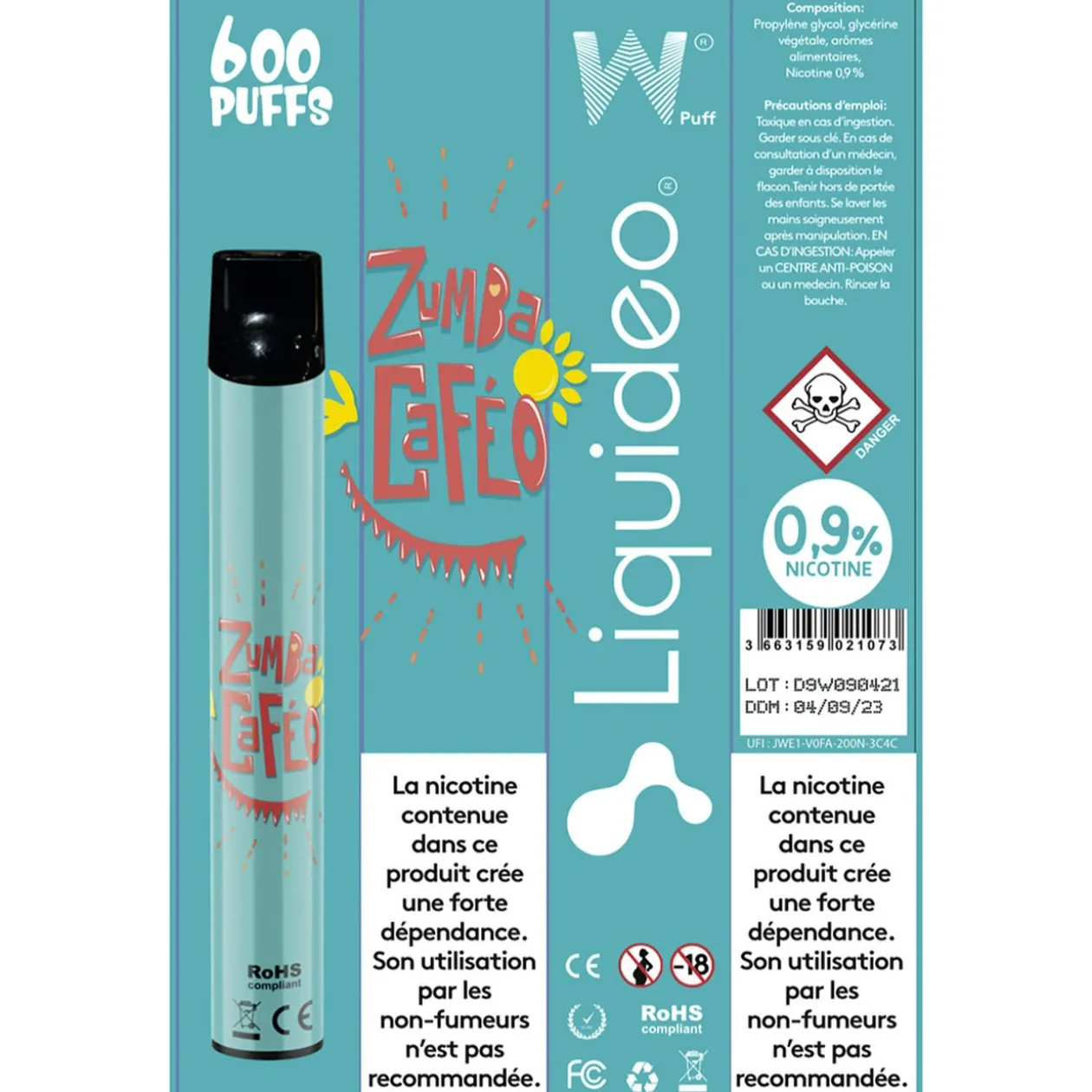 - Composition : PROPYLENE GLYCOL, GLYCERINE VEGETALE , AROMES, SEL DE NICOTINE 0,9%