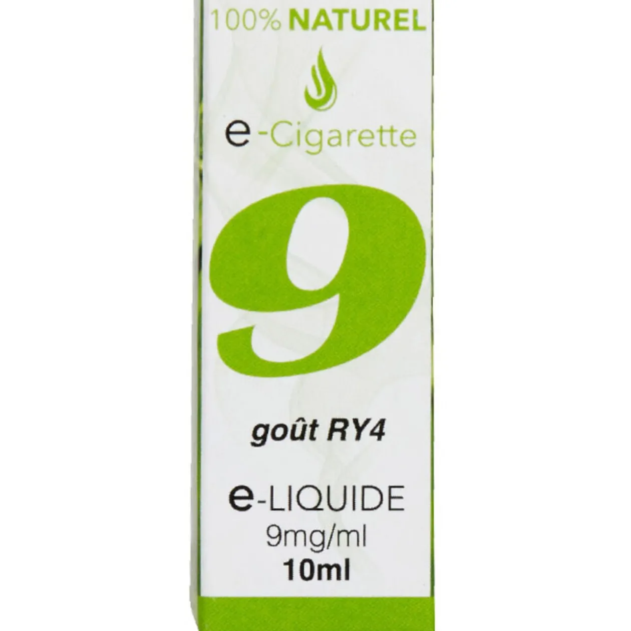 E-liquide pour cigarette électronique, goût RY4, nicotine9 mg/ml, cont. 10 ml. 100 % naturel