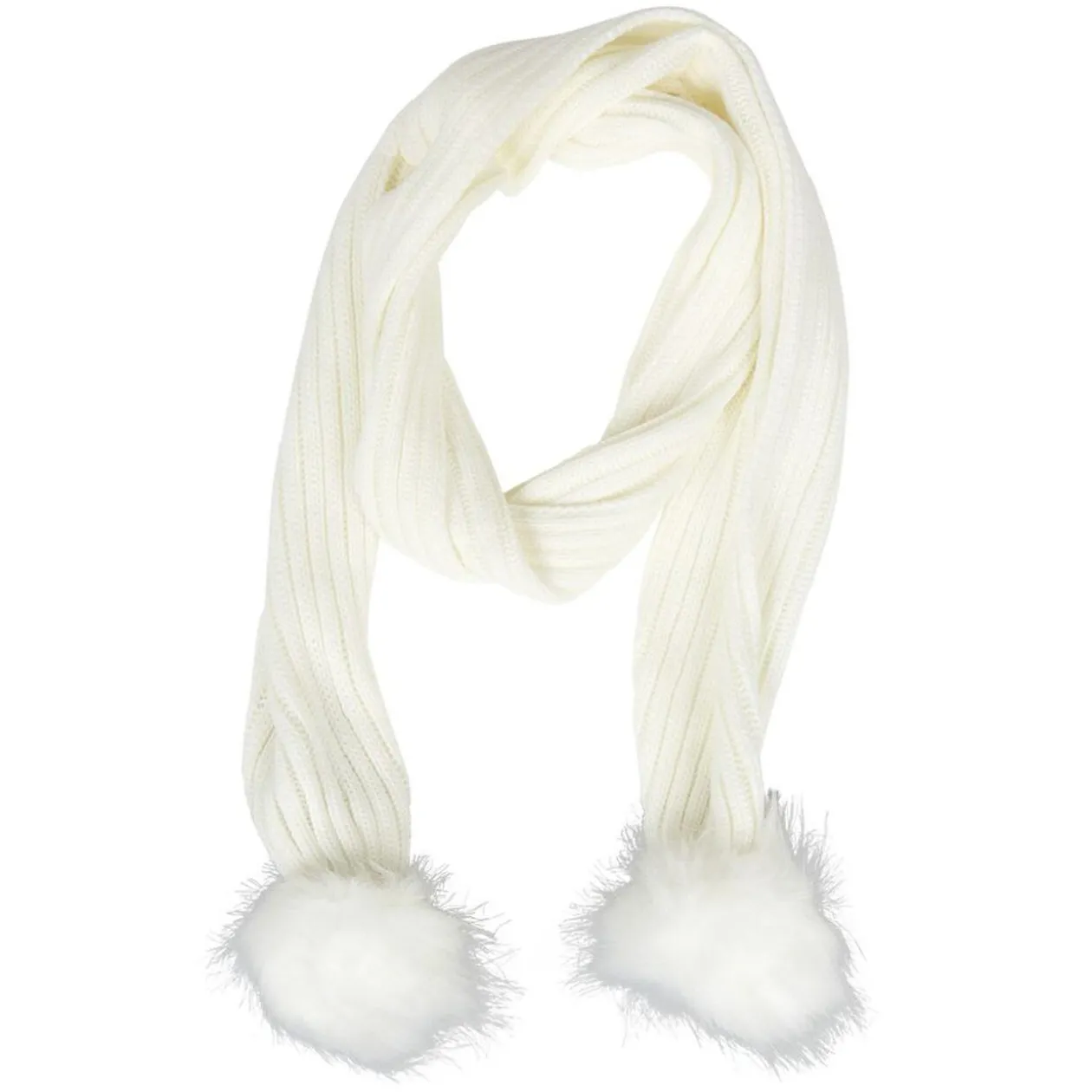 Écharpeblanche décorée avec de gros pompons aux extrémités.