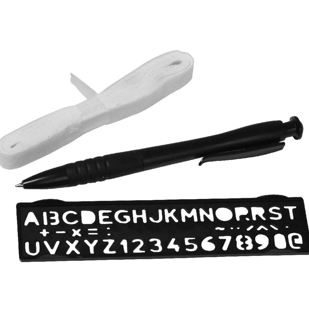 Etiquette en polyester à personnaliser. Le kit comprend le stylo et le pochoir.