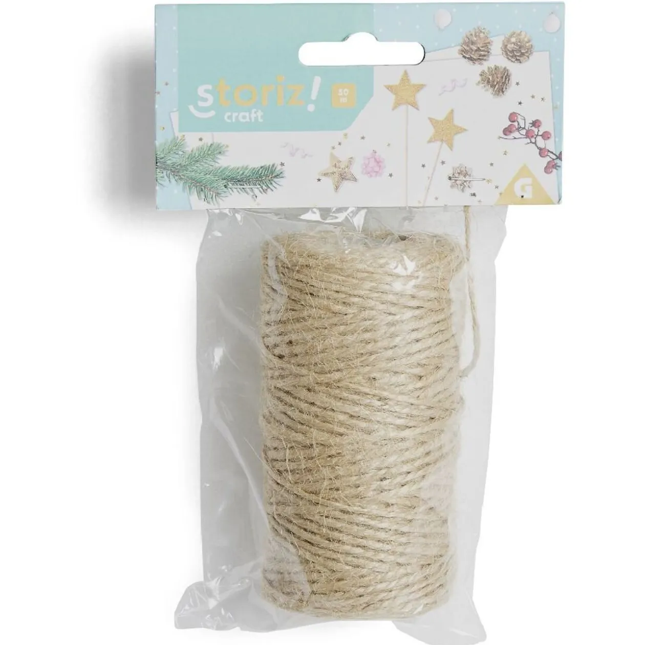 Fil décoratif en papier beige naturel de 50 mètres de longueur. Idéal pour tous vos loisirs créatifs.