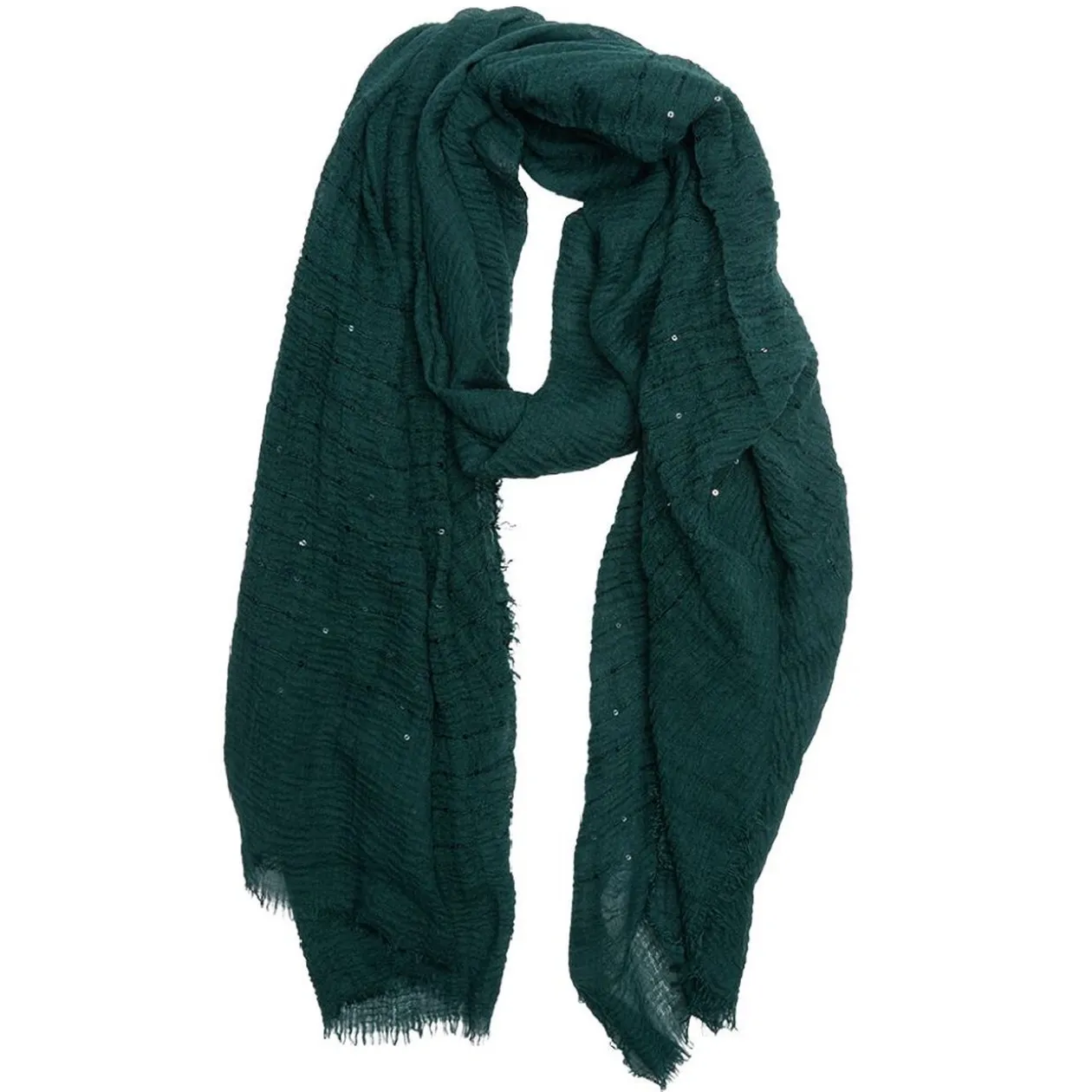 Craquez pour ce foulard vert canard agrémenté de petites touches de sequins pour illuminer tous types de tenue dans un style décontracté et élégant.