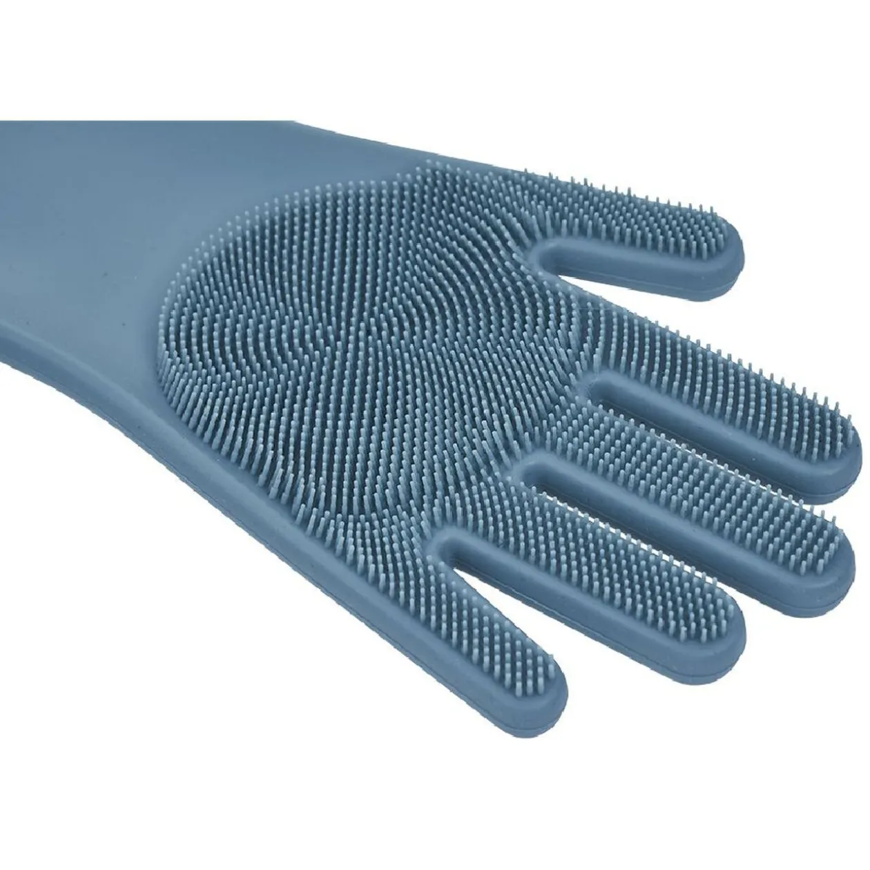 Facilitez vous la tâche lorsque vous nettoyer votre vaisselle à l’aide de cette paire de gants en silicone bleu.