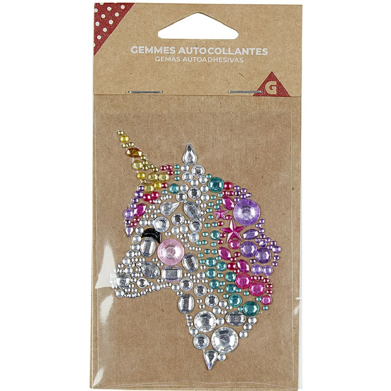 Set de gemmes autocollantes en forme de tête de licorne.