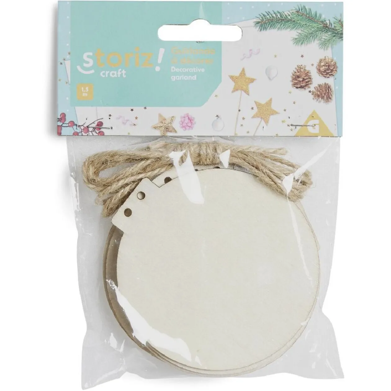 Guirlande en corde avec 6 boules plates en bois à personnaliser selon vos envies et votre style intérieur !