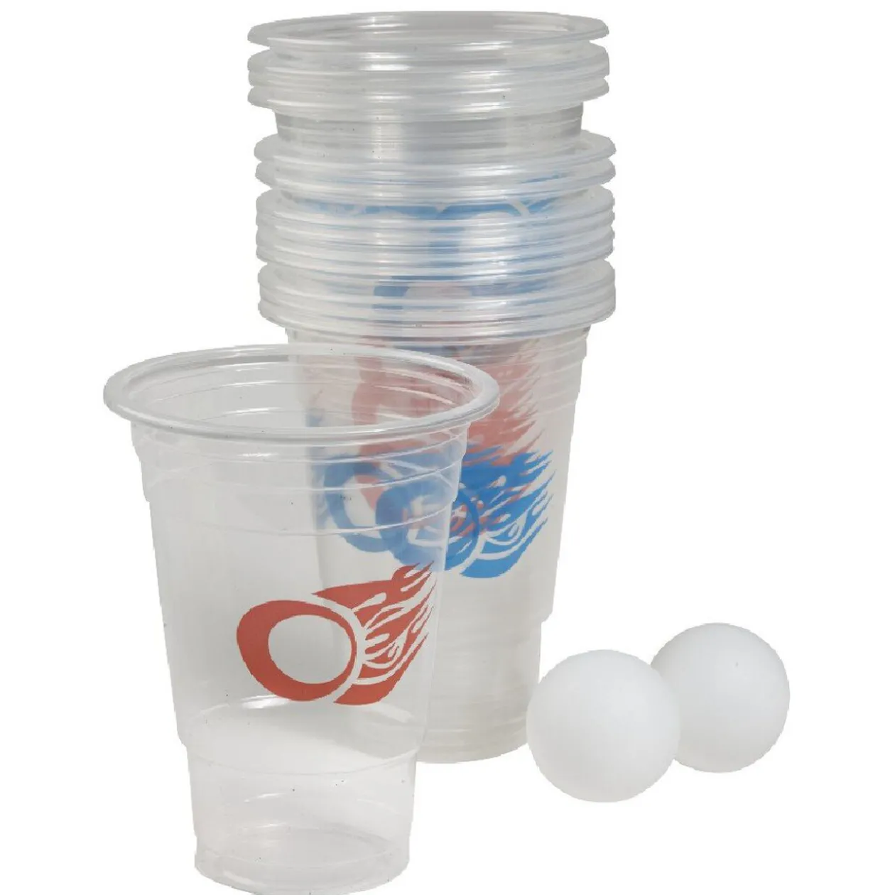 Jeu à boire ping pong comprenant 14 gobelets et 2 balles, plastique.