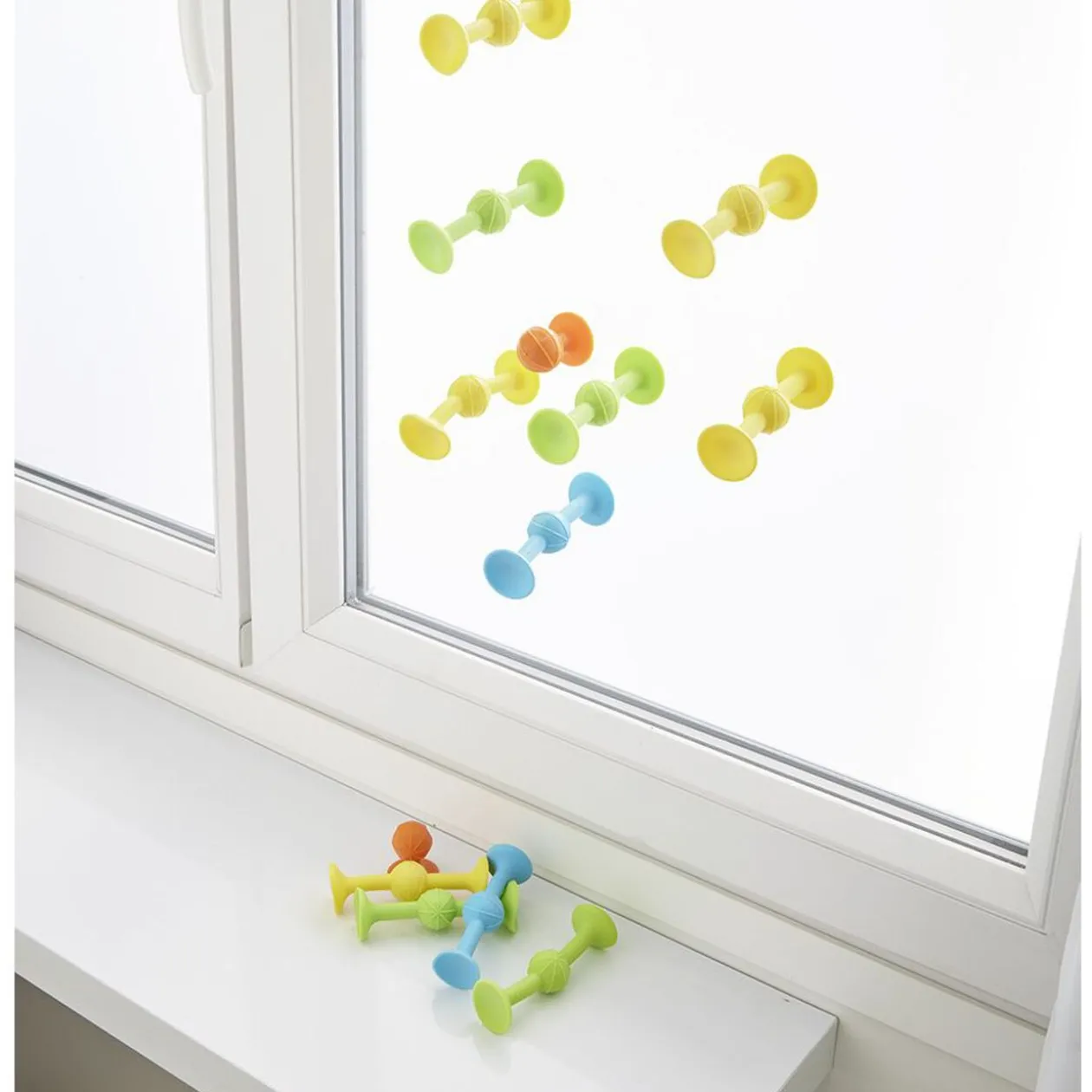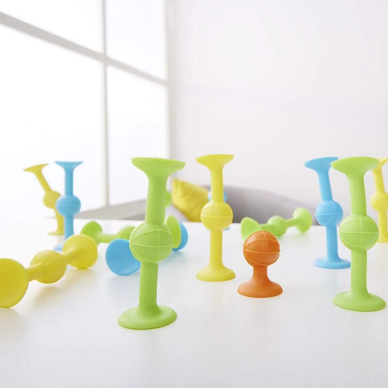 Set de 17 fléchettes en silicone avec ventouse (coloris assortis: bleu, vert, jaune, orange).