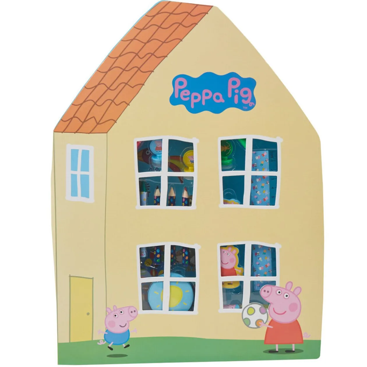Coffret Peppa Pig 75 pièces, dim : 29,5 x 3,5 x 39,5 cm.