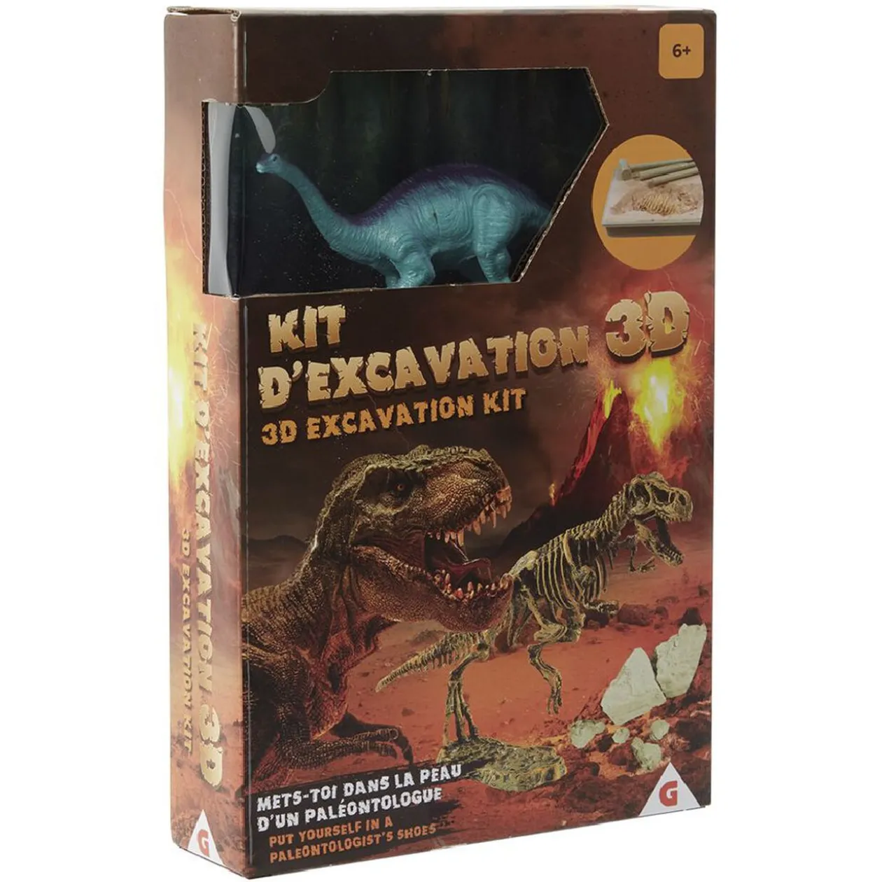 Comprend un dinosaure (Stegosaurus, Brachiosaurus ou T-Rex), un bloc de plâtre et un kit de 3 outils.