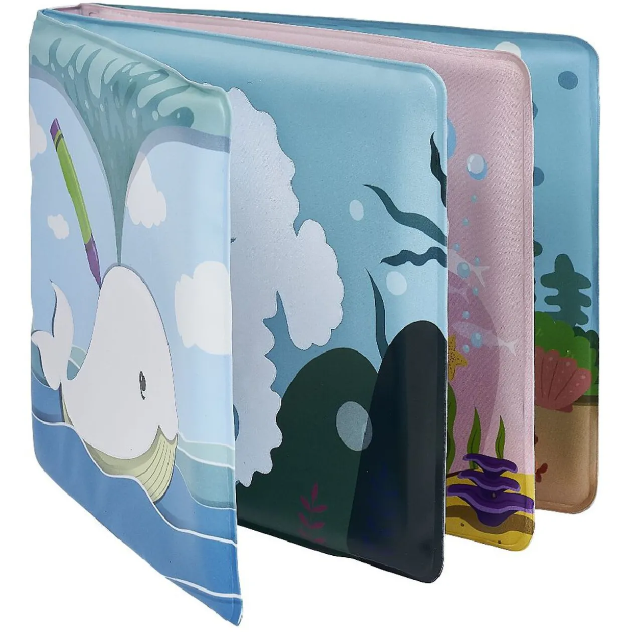 Livre de bain comportant 4 pages avec lesquelles bébé pourra s’amuser dans l’eau.