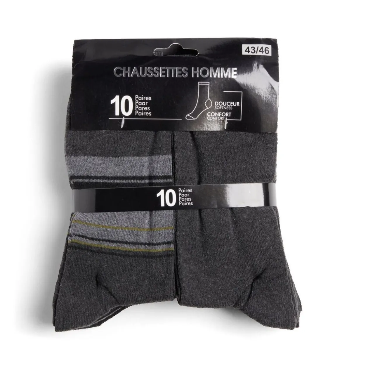 Lot de 10 paires de chaussettes pour homme, taille 43/46, en coton noir.