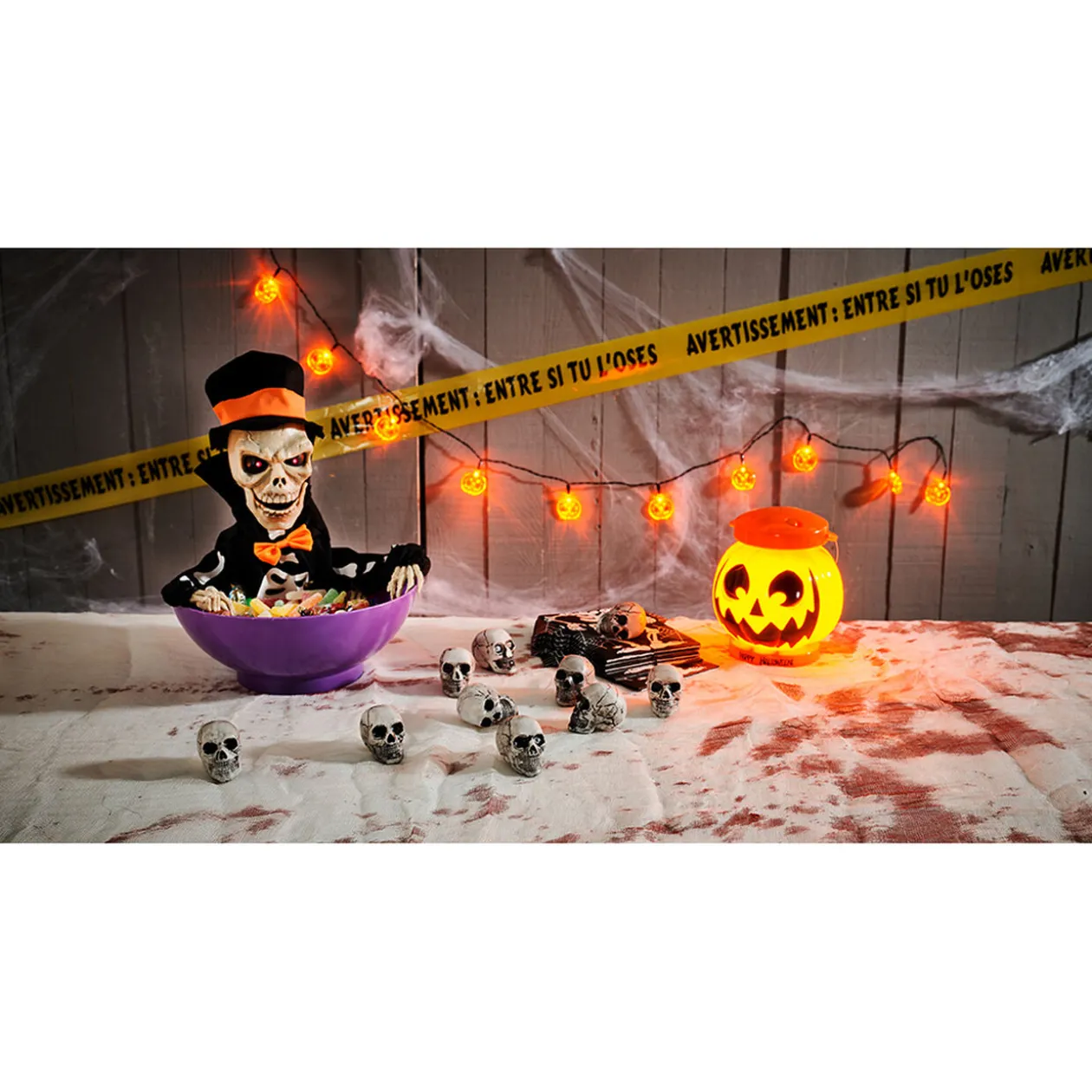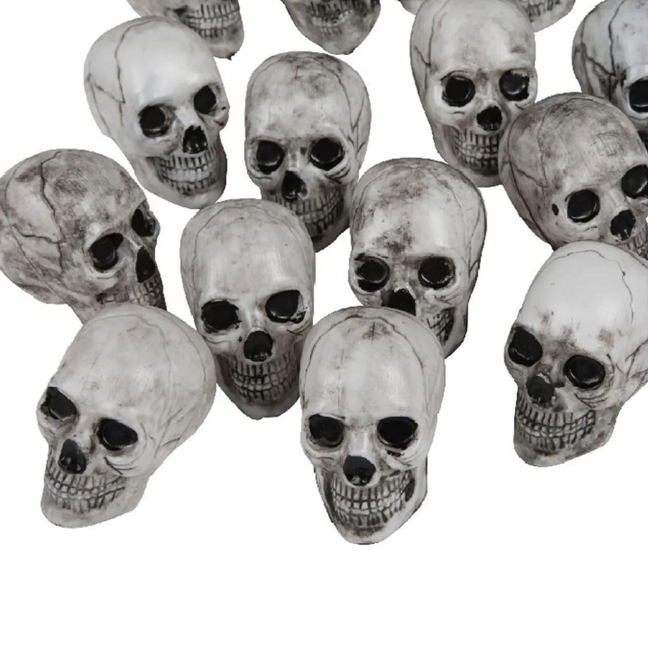 Lot de 10 minis crânes à poser pour votre décoration de table sur le thème de l’horreur ou pour Halloween.