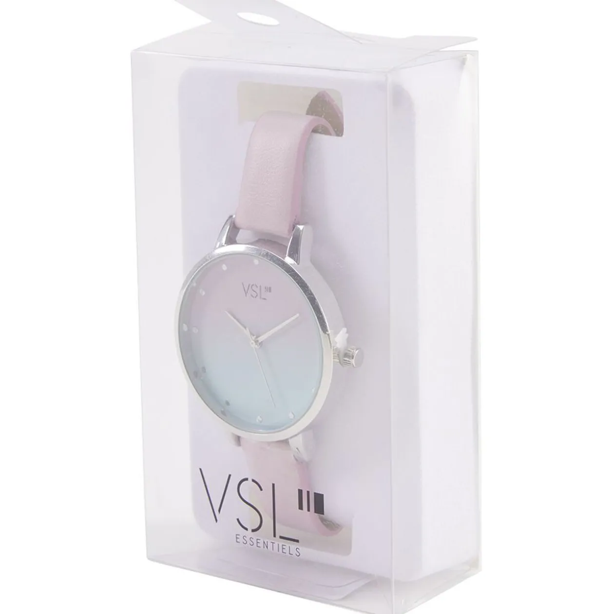 Montre avec bracelet en plastique rose pastel et cadran rond déco tye & die.