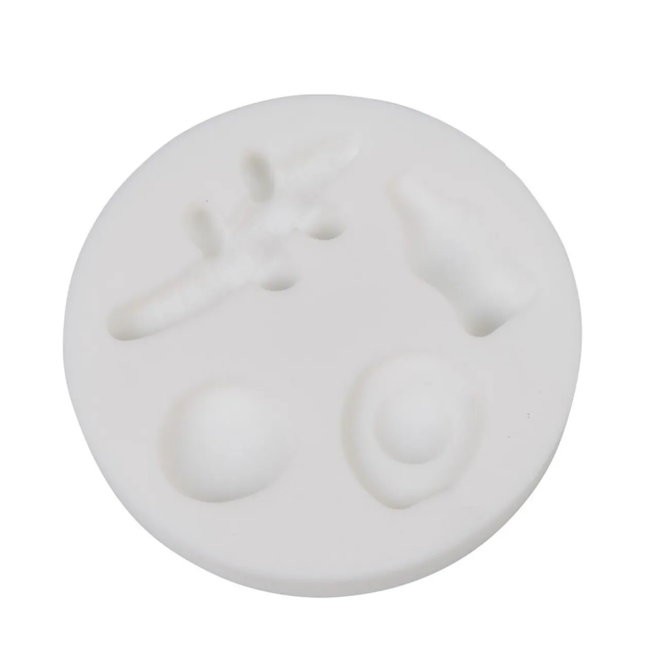 Moule silicone blanc dim. Ø7xh.0,5 cm, pour 4 minis sucreries L. 2, 2.5 et 4.5 cm.